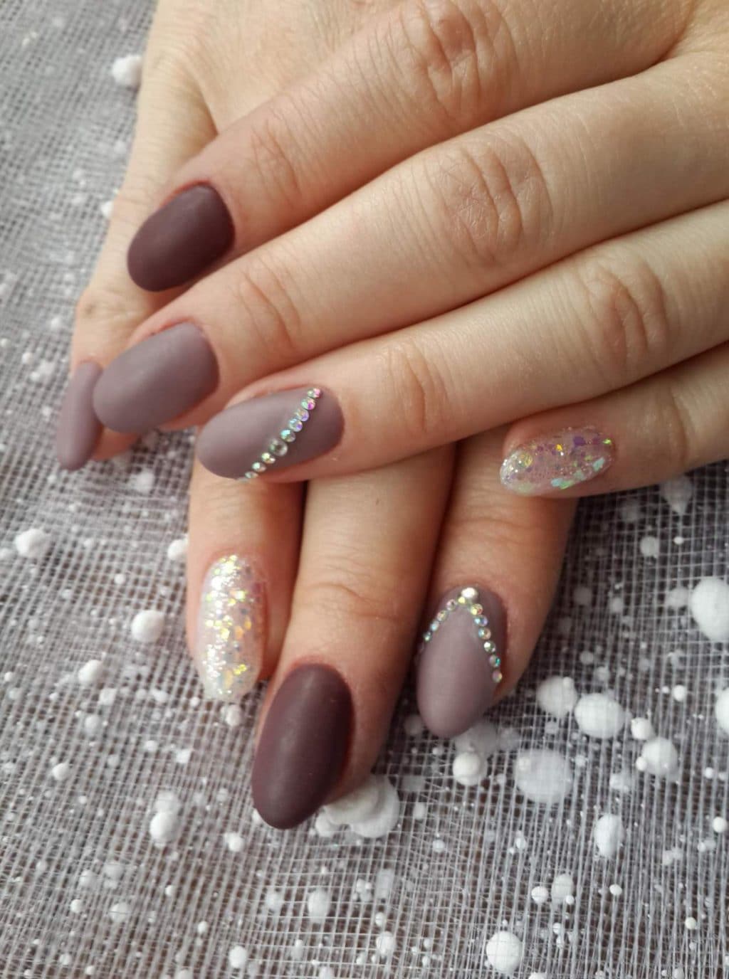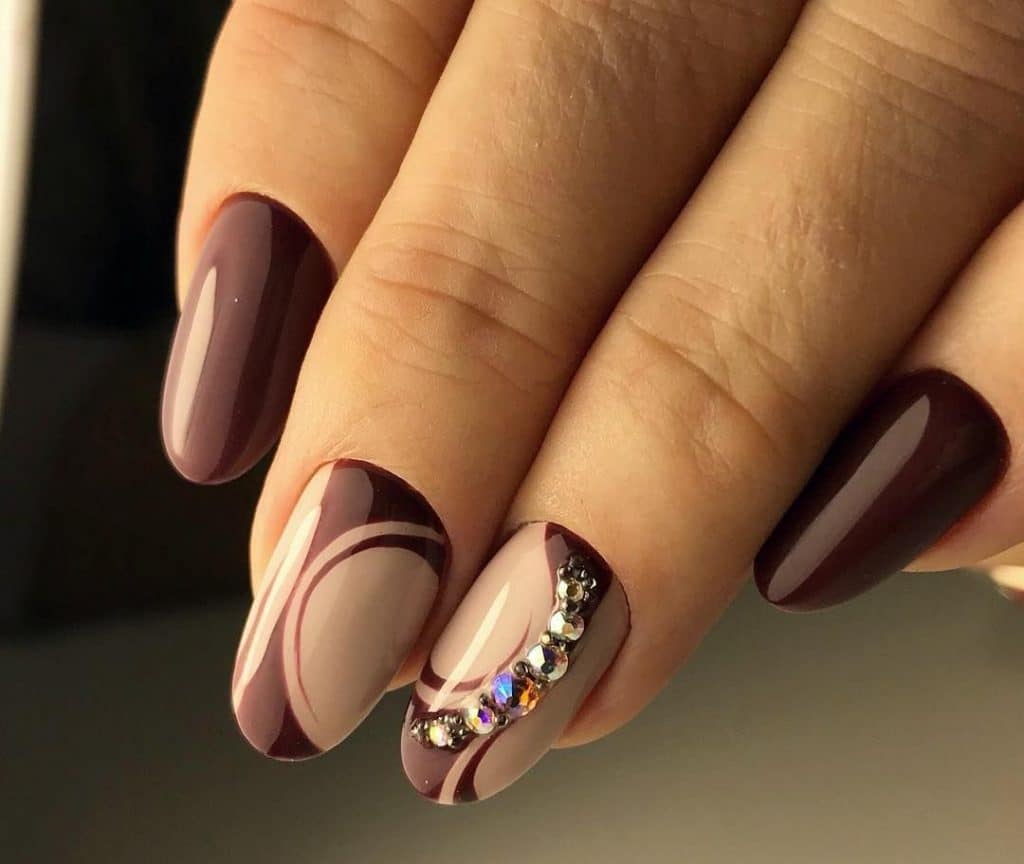 Coffee manicure with rhinestones