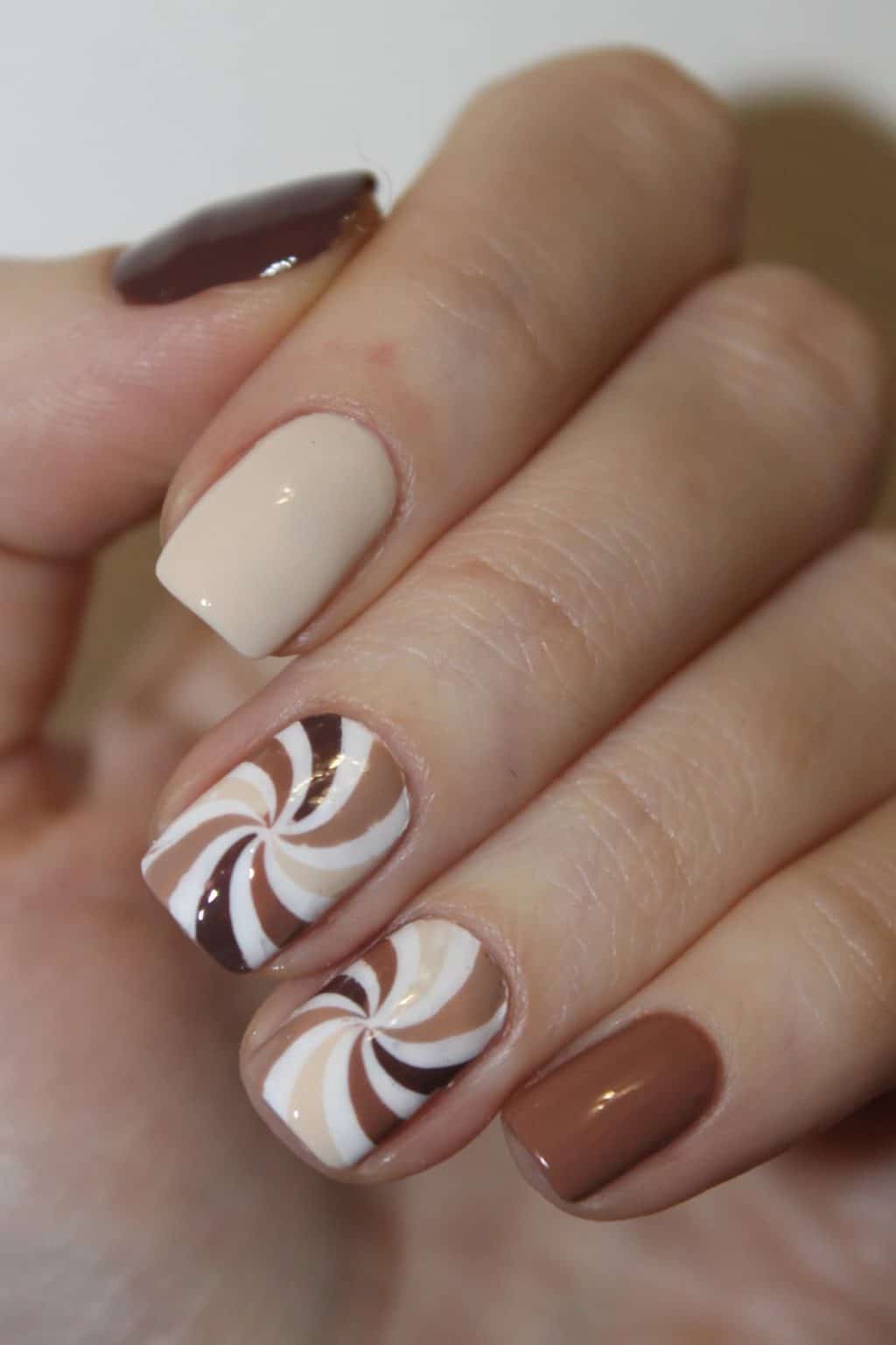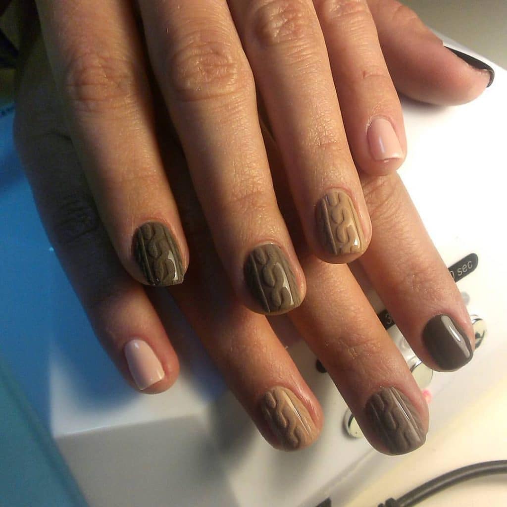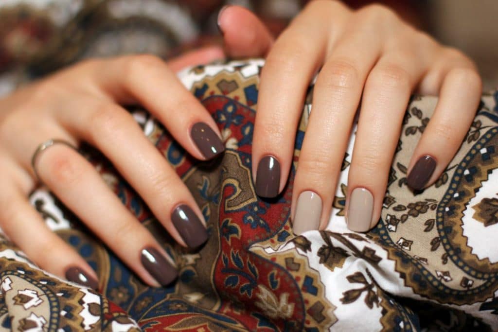 Fashionable shades of coffee manicure.