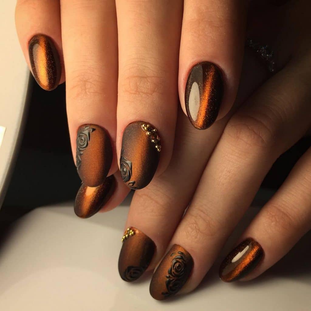 But for lovers of black strong coffee, dark coffee manicure is suitable. This is ideal for a New Year's party or some other evening event.