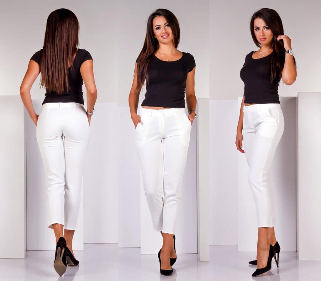 Usually in white chinos, girls prefer to dress in the summer, as the white color perfectly sets off tanned skin on thin ankles.