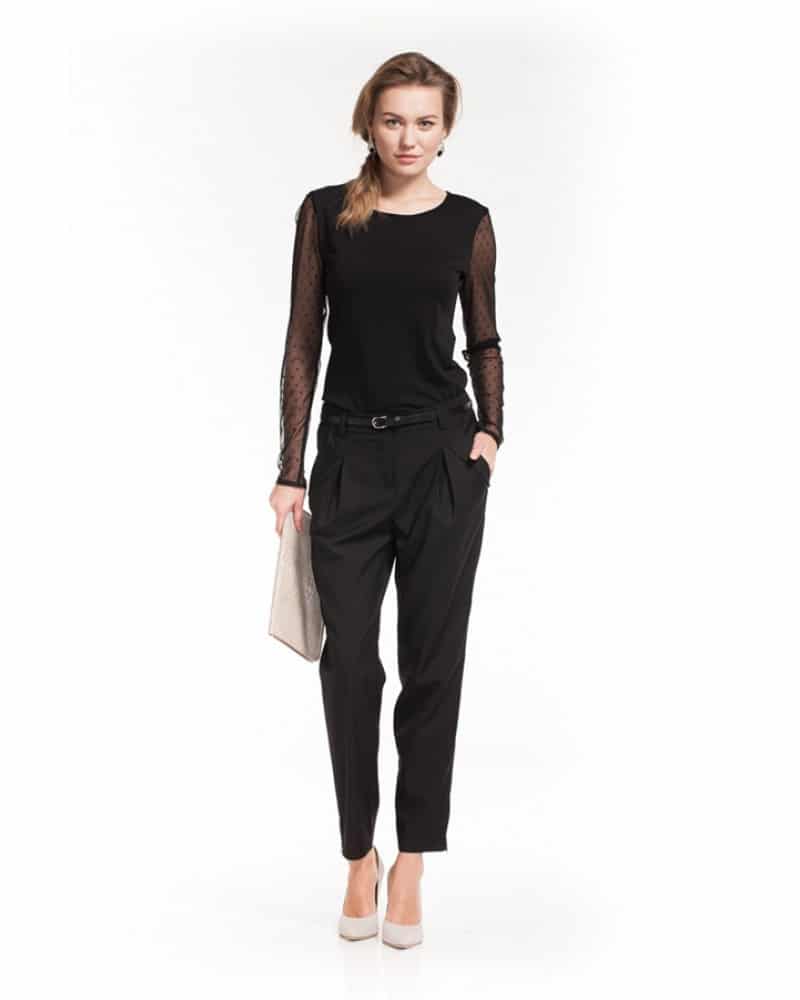 This type of trousers visually increases the hips, which must be remembered when buying.