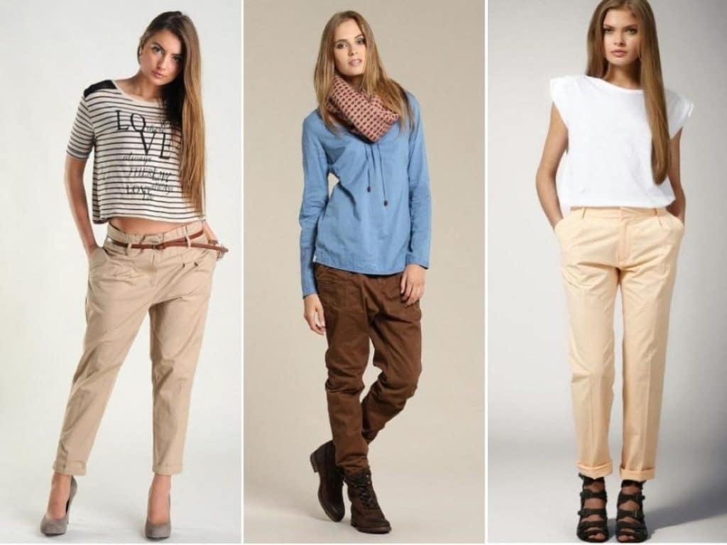 Chinos - sew from cotton and linen. Their cut can be from free to narrowed to varying degrees.