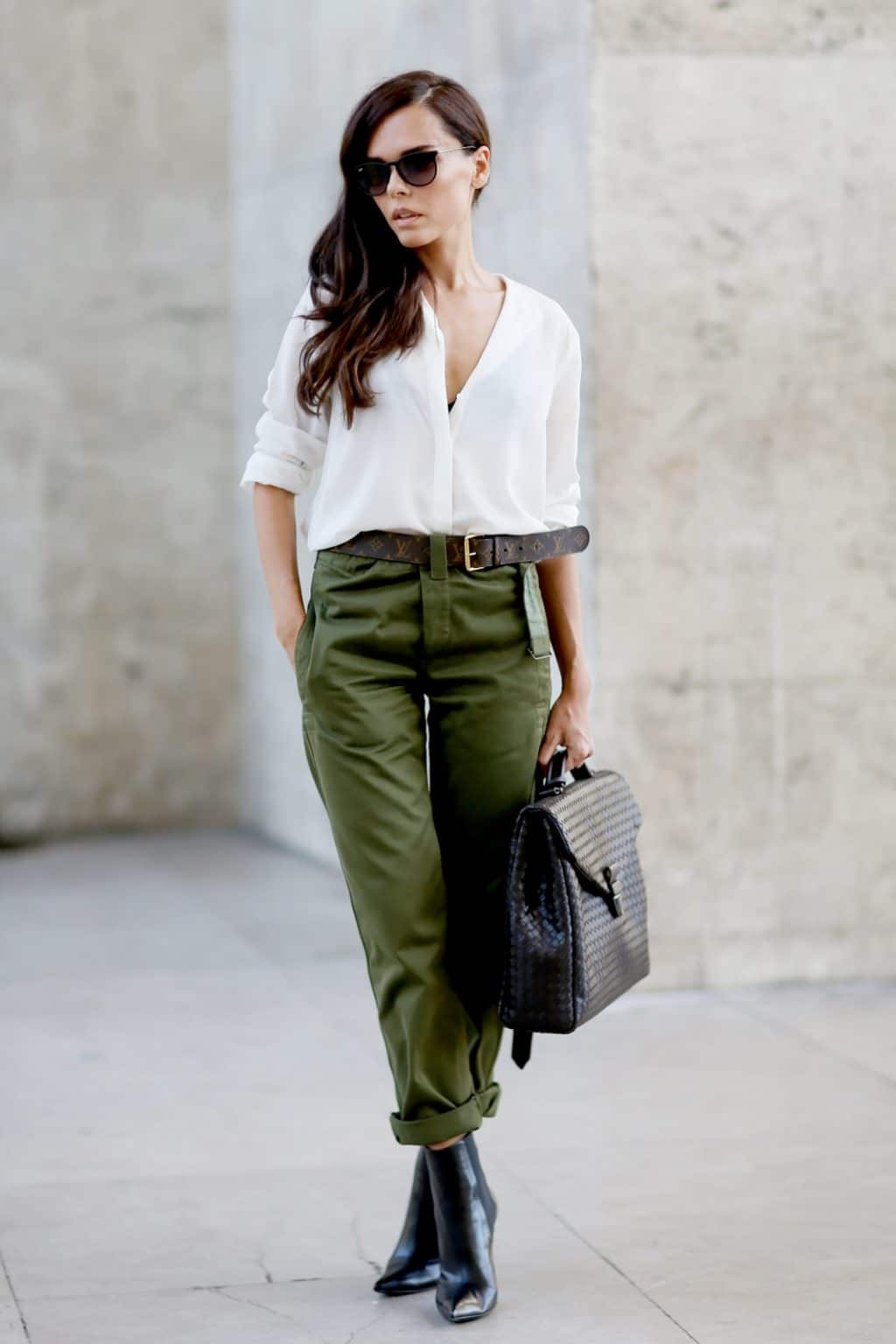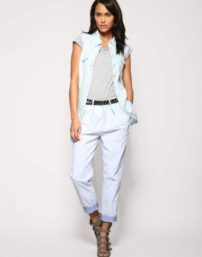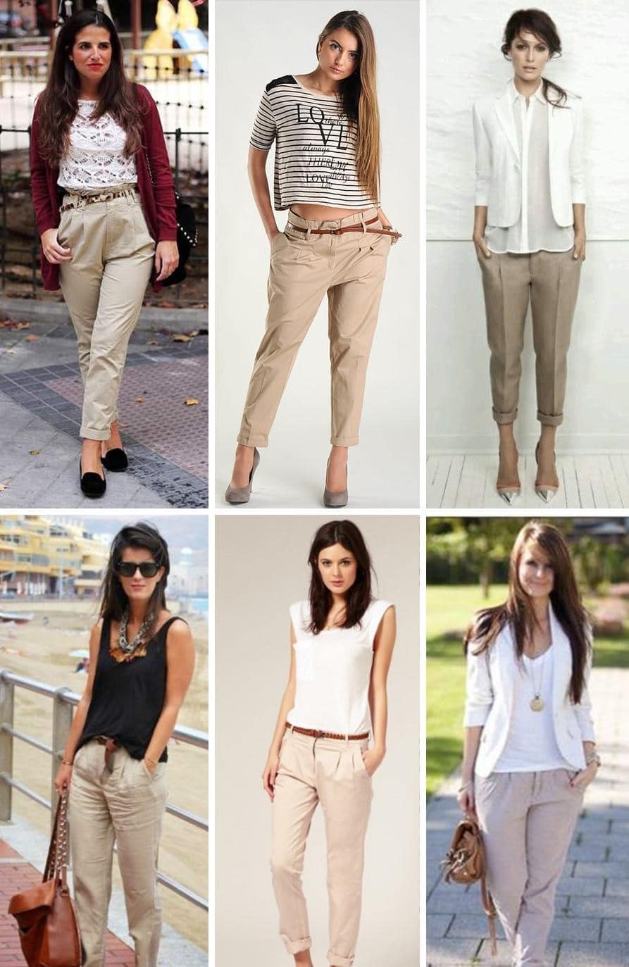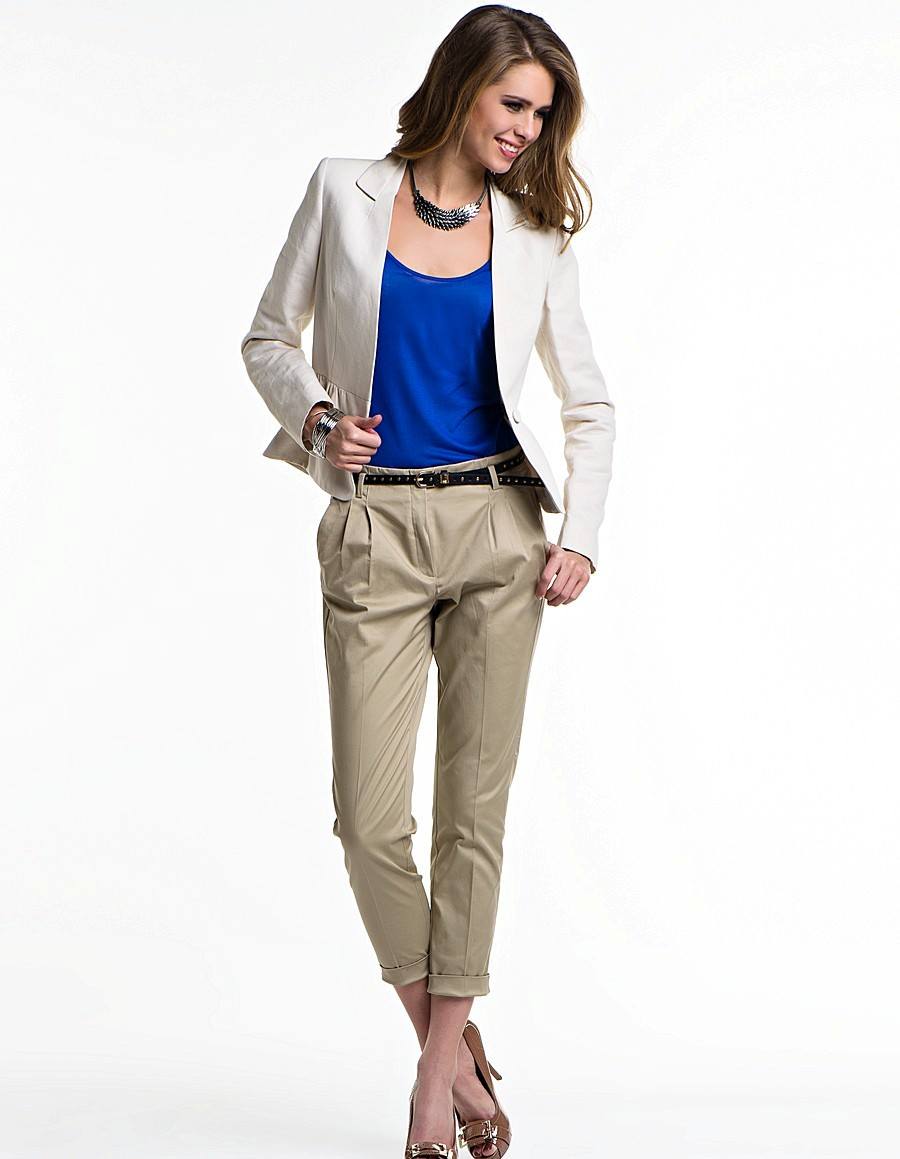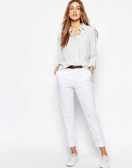 White chinos are easy to combine, both with shoes or high-heeled sandals, and with more practical shoes: ballet flats, flat shoes or wedges, sneakers, boots and others.