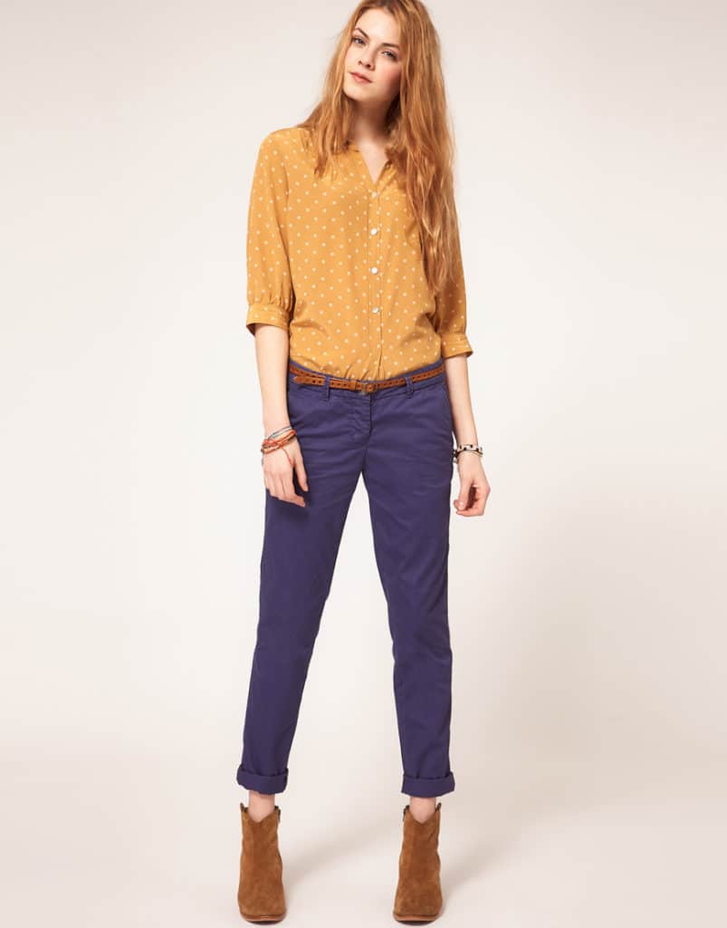 There is a rich palette of all kinds of colors of chinos. Here you already need to find your color and choose it correctly in accordance with the figure.