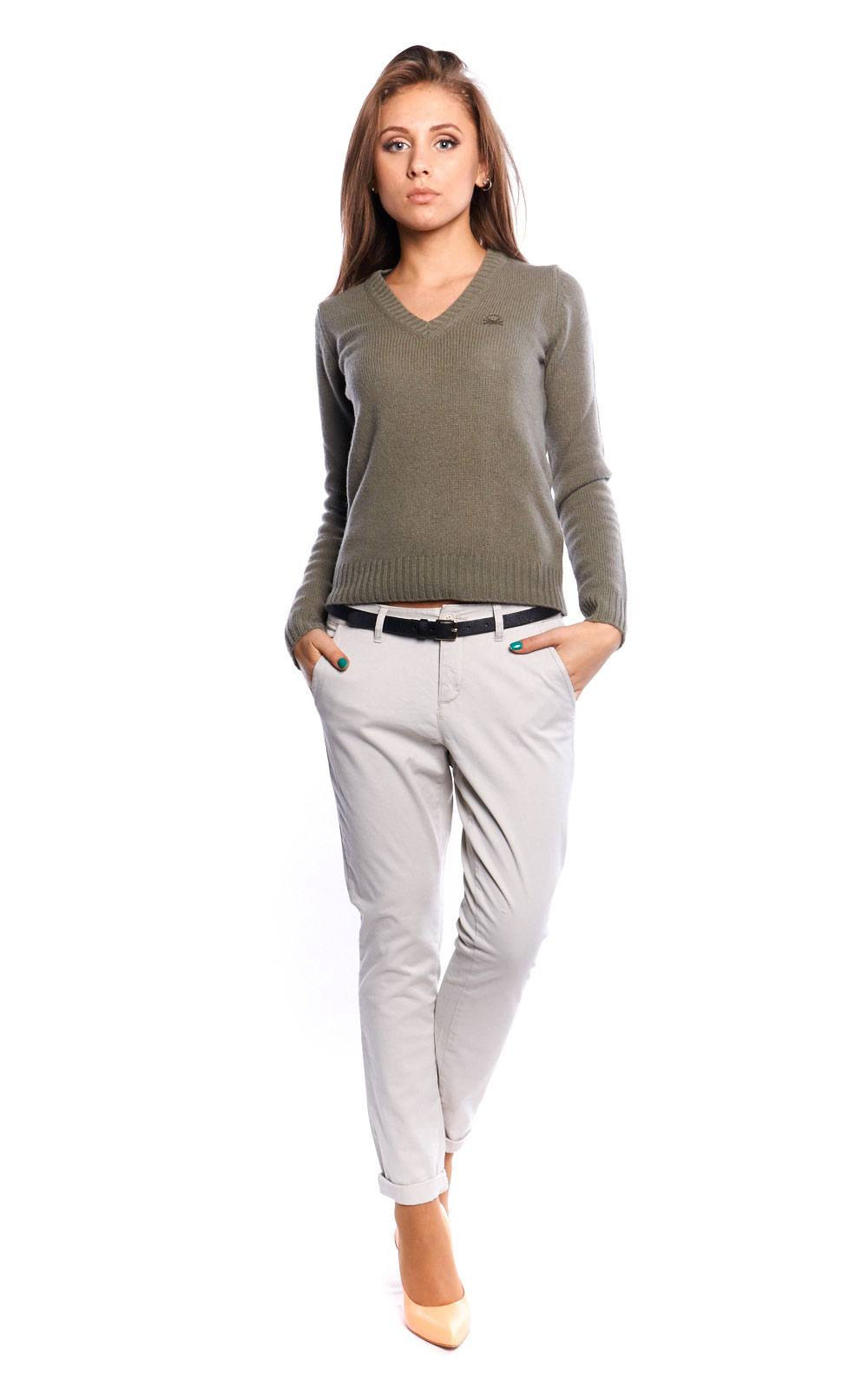 Such chinos are easy to combine with sweaters of any style and color.
