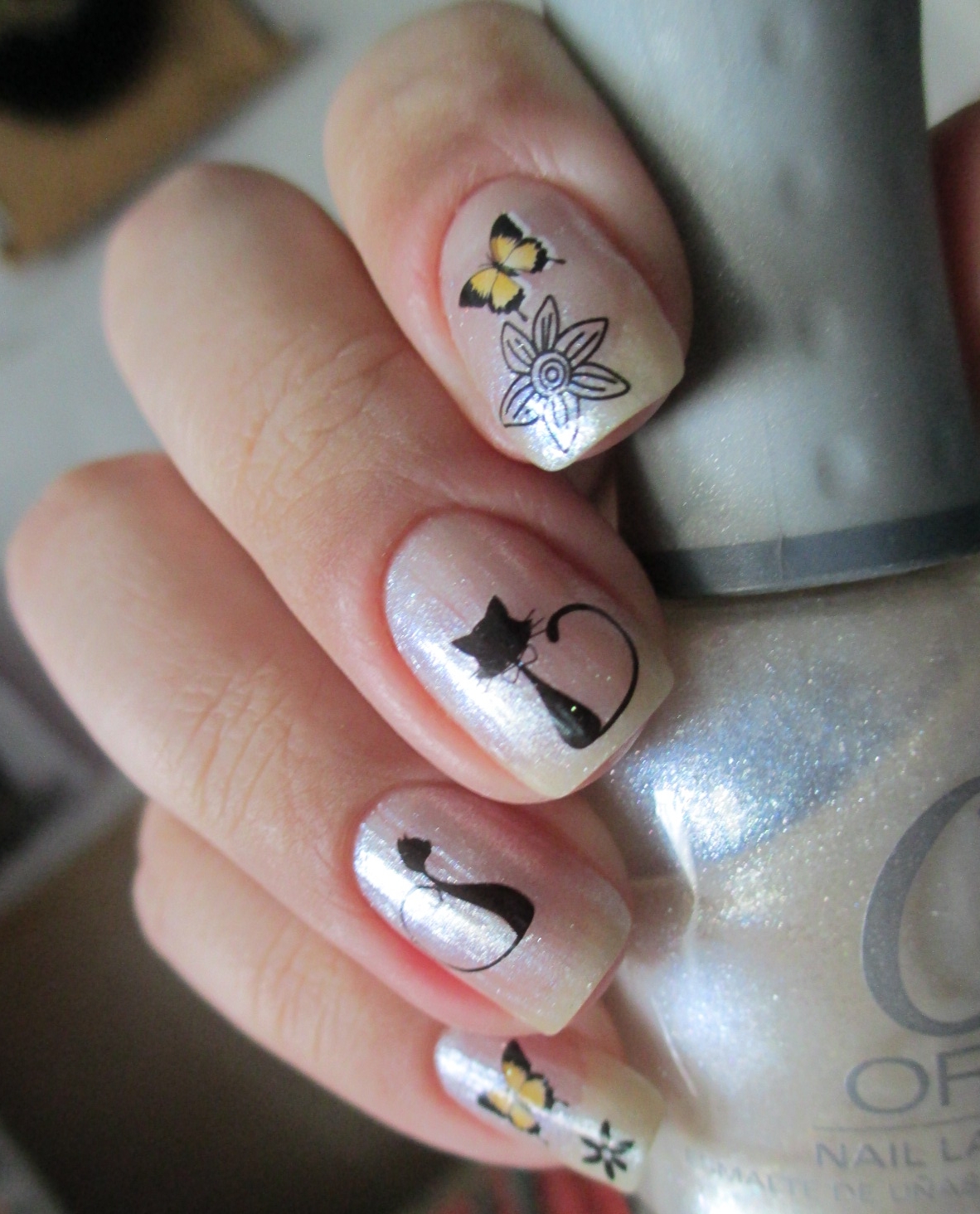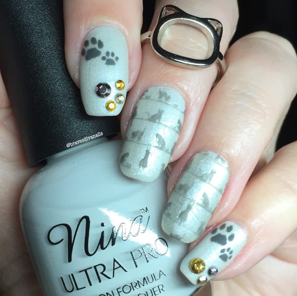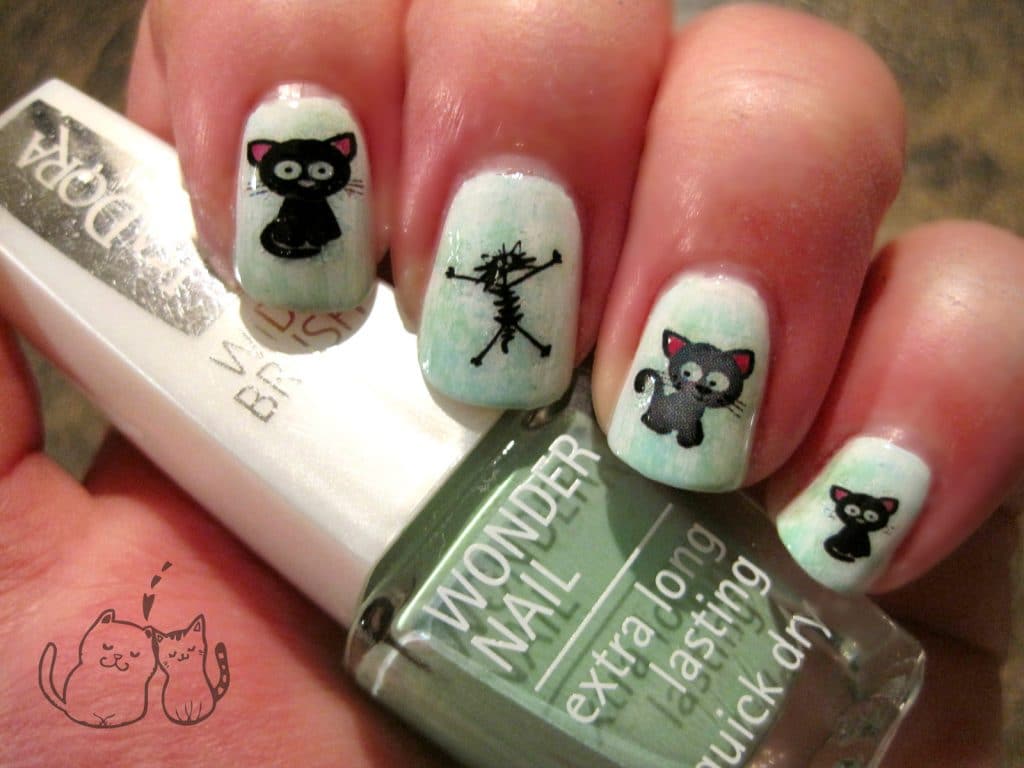 Another option for cat manicure is a manicure with a cat silhouette. The silhouette can be applied to the nail with the slider sticker. (the so-called slider design), or painted by hand with a brush.