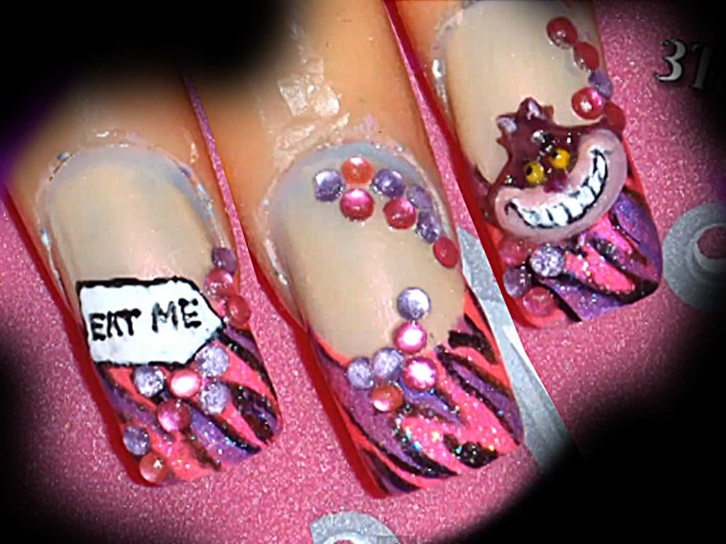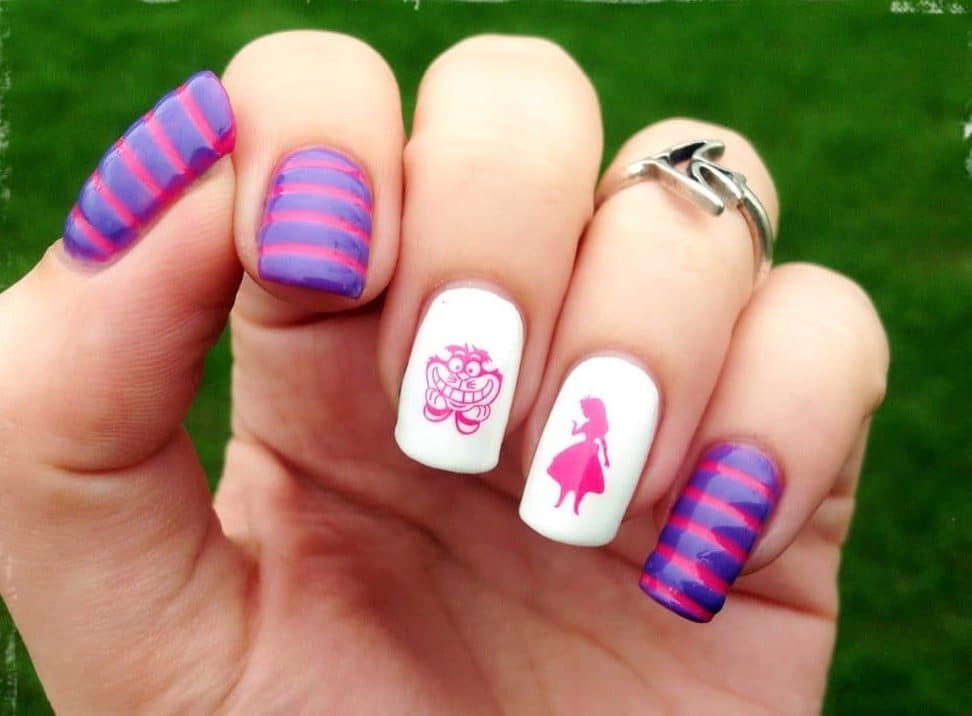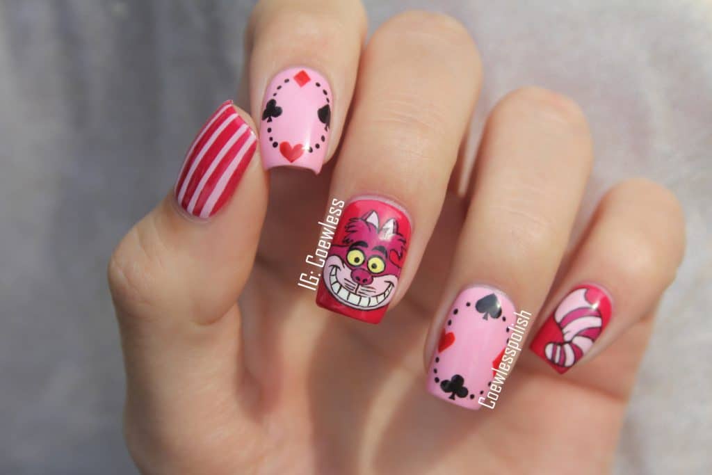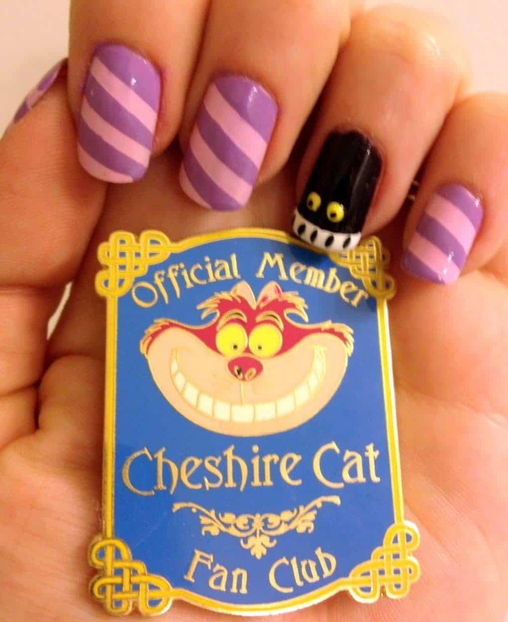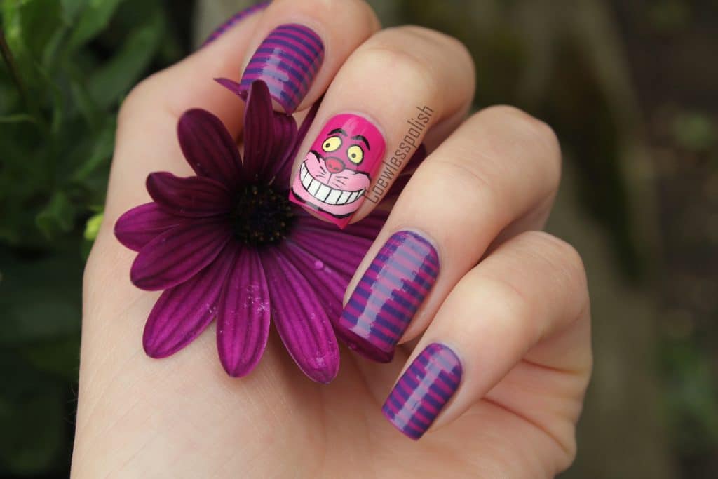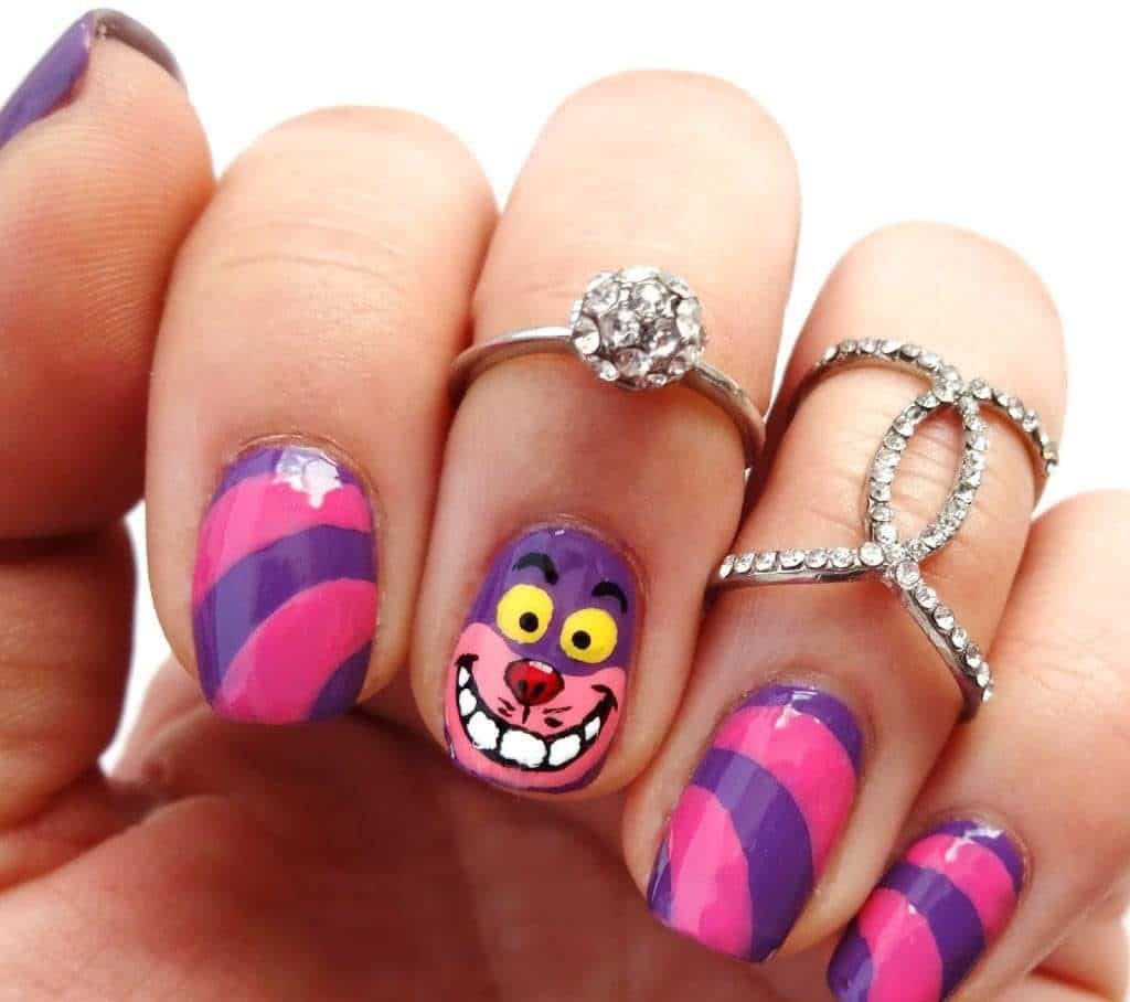 Another popular type of cat manicure is a manicure with a cheshire cat. Favorite character of many girls from the fairy tale "Alice in Wonderland." A cute cat smiling in all 32 teeth will not leave anyone indifferent.