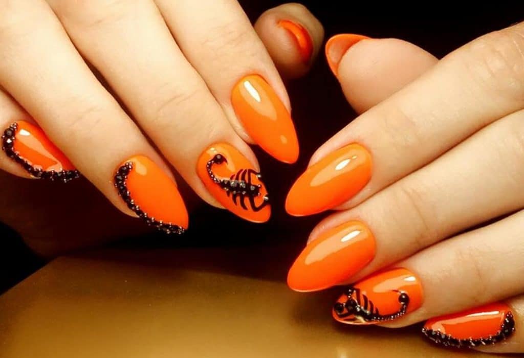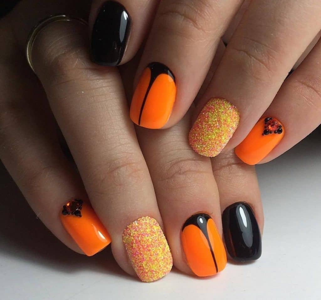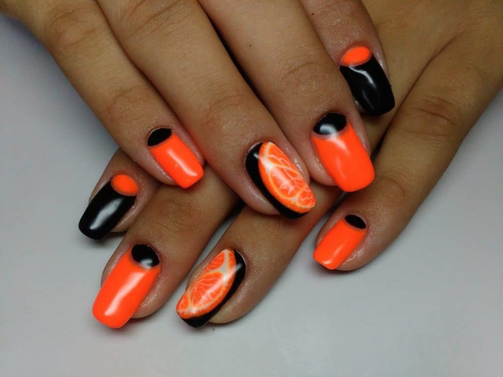 IMPORTANT! Black color greatly enhances the brightness of orange. Before performing such a manicure, make sure that it will be appropriate for you.