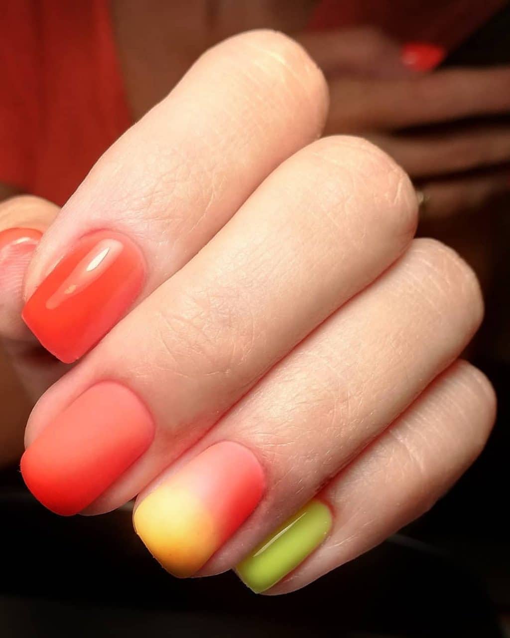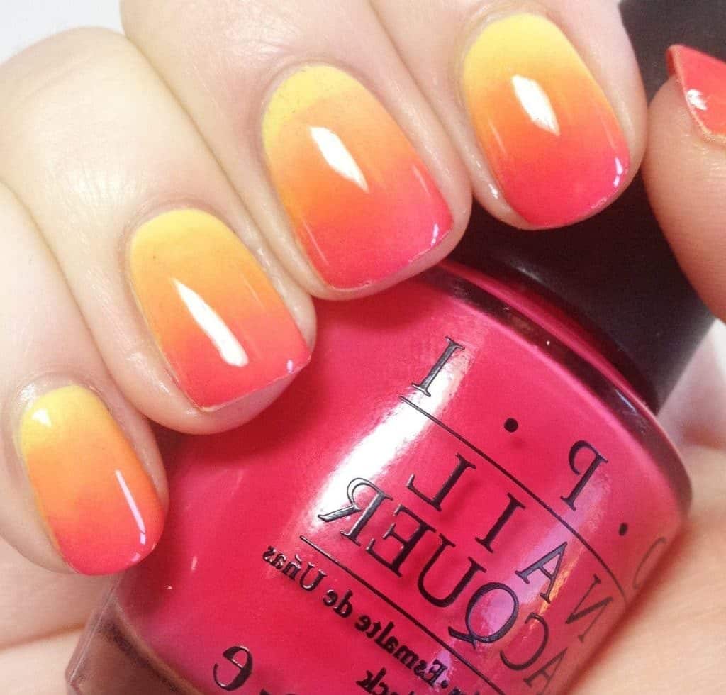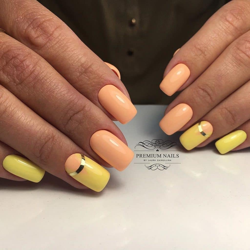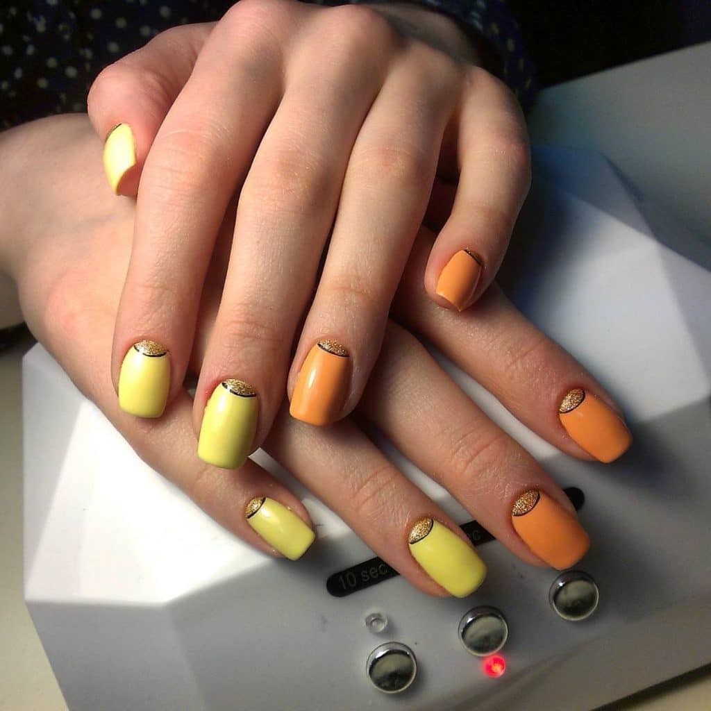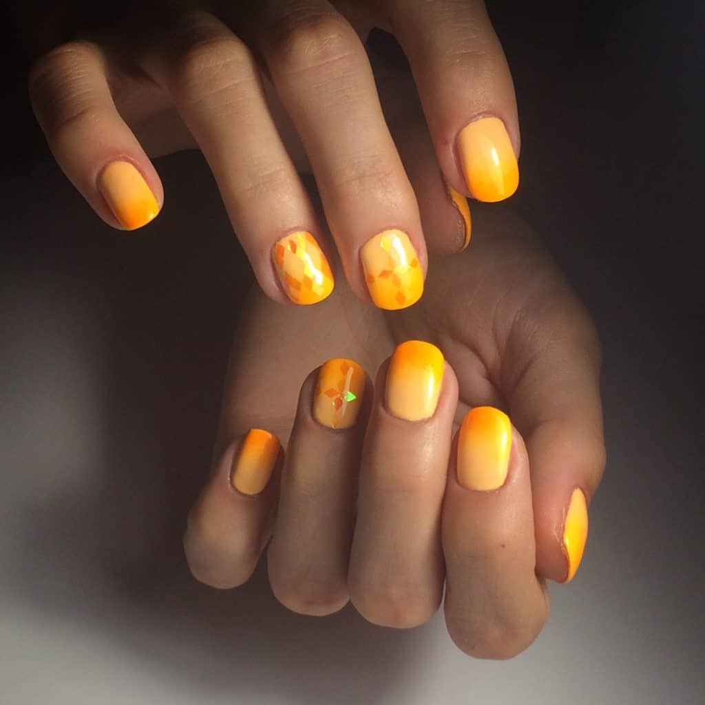 - Yellow orange. This shade also cannot be confused with anything. This color looks luxurious in a gradient manicure. It allows you to create just cosmic combinations and transitions. Not a single fashionista will definitely remain indifferent.
