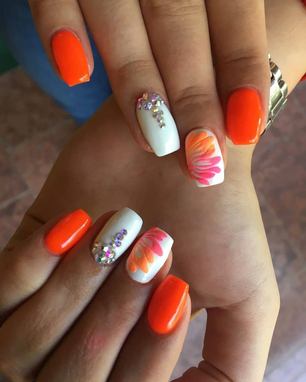 - Bright orange. Such a manicure is ideal for summer. It is bright, juicy and truly summer. In addition, in this shade, you can realize many interesting ideas regarding design.