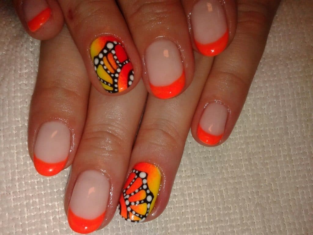 Orange manicure can be performed in absolutely any technique and with absolutely any design. It all depends on the professionalism of the nail service master and on the client’s imagination. However, there are several most popular designs for orange manicure: