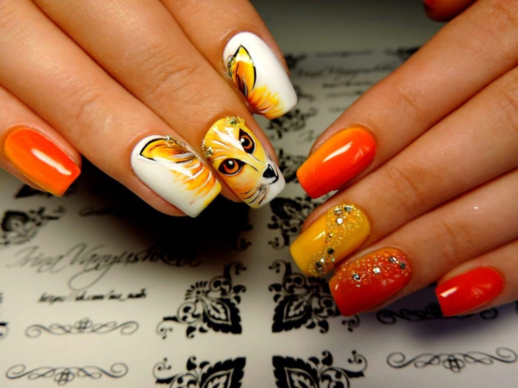 Drawings with orange varnish are spring, summer, and autumn design options. Unless the winter orange manicure will look somewhat unnatural.