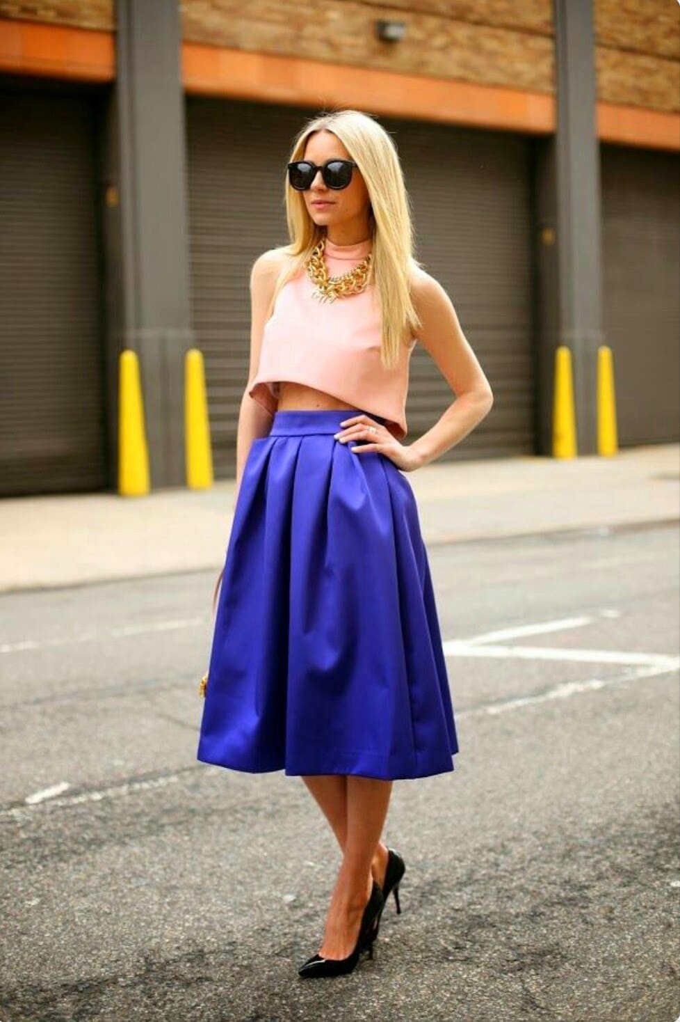 This is the length of the skirt just below the knee and takes pride of place in the fashion world. With this type of skirt with high waist, you can cover your full legs, especially if it is a trapeze or magnificent.