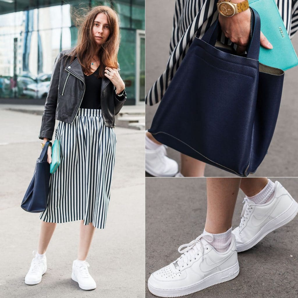 In the evening, you can easily put on a leather jacket and add some stylish accessories. And your image has completely changed without effort and dressing up.