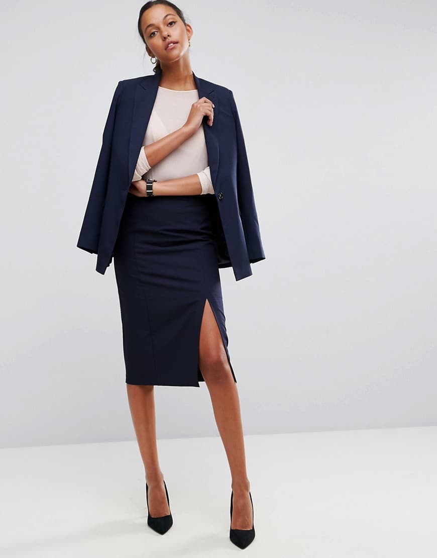 A high-waisted pencil skirt accentuates your beautiful waist and makes your hips rounded.