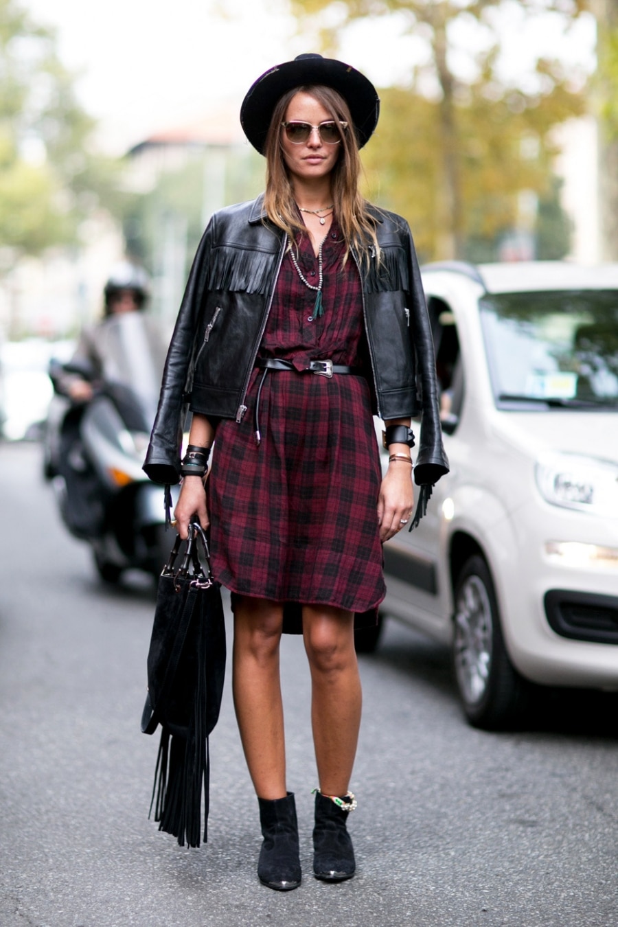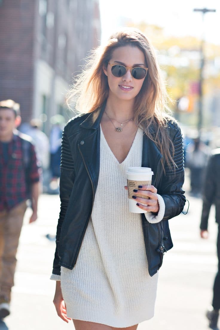 Brave and bold girls combine light dresses with a leather jacket and rude boots.