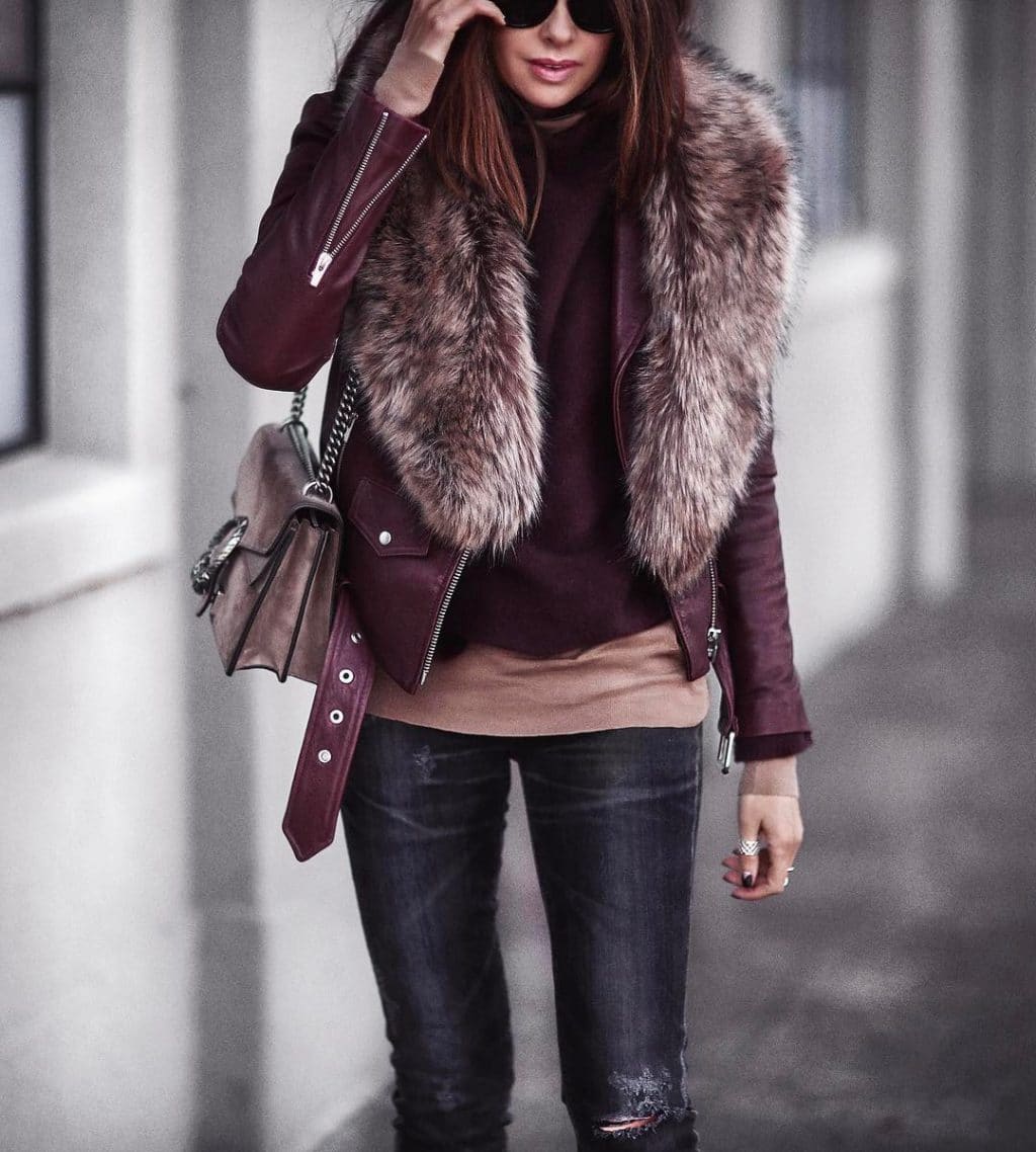 Speaking of a leather jacket, we certainly imagine a black jacket. Truly black is the most universal color and is so dearly loved by every girl, but he is not the only one. Jackets in pastel colors look luxurious: beige, light pink, ivory, brown, white, gray. These colors of jackets will also not only fit your every outfit, but will also set you apart from the gray mass. Also, there are always options for burgundy, blue, red and many other jackets.