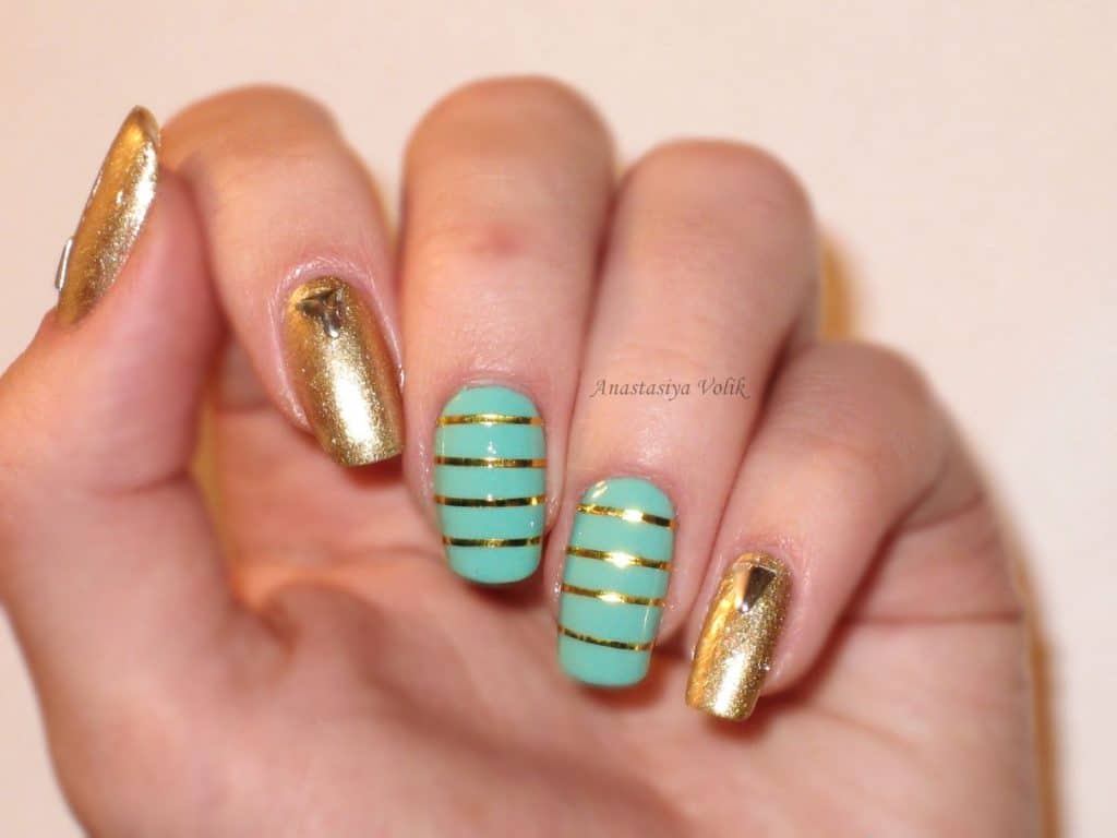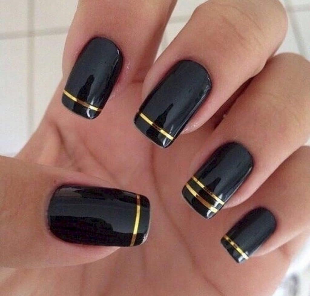 One of the universal and rich colors is gold. Gold stripes will look especially good on a dark, velvet background. Gloss also should not be ignored. The shiny coating will highlight the striped design, making it brighter.
