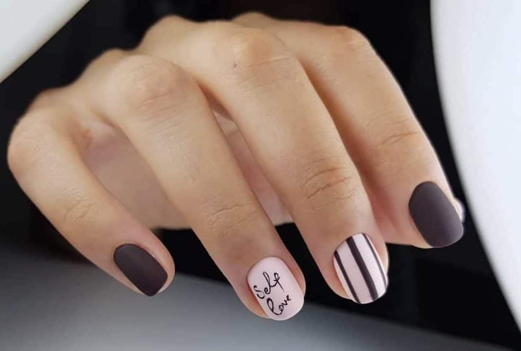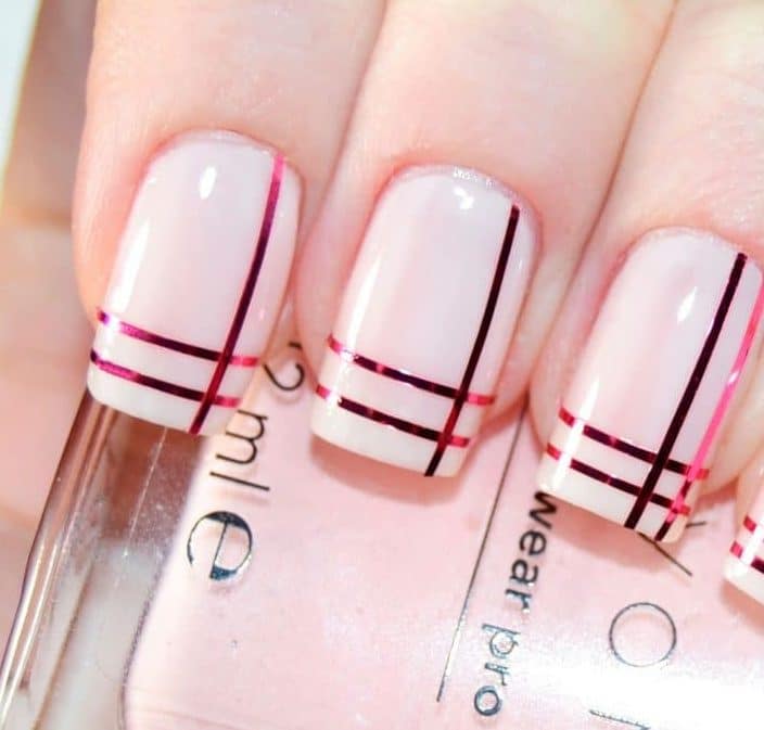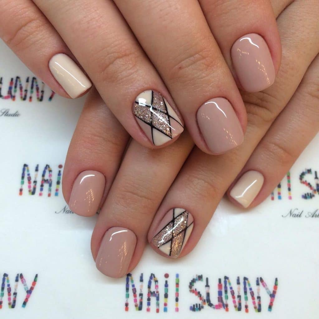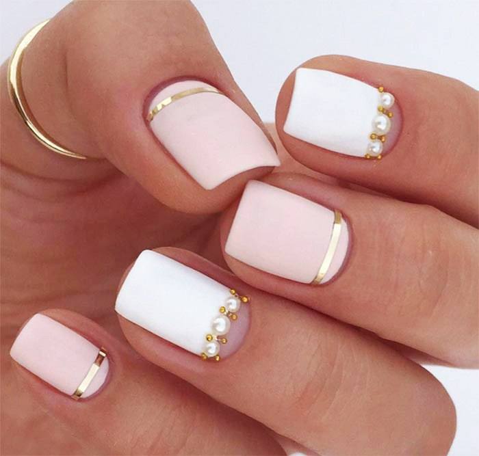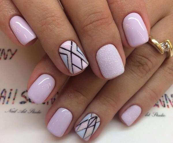 For sophisticated people, a manicure in pale pink with silver or gold stripes is suitable.