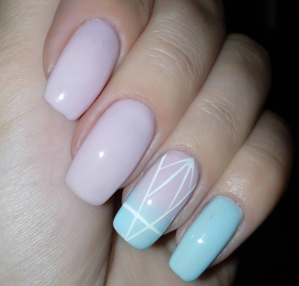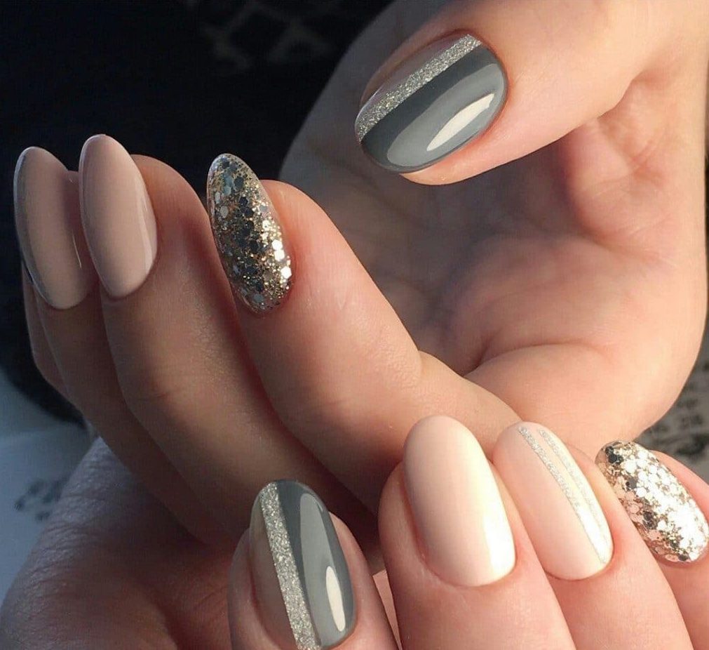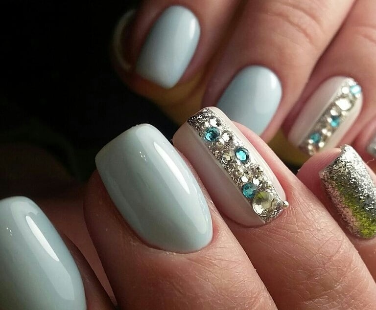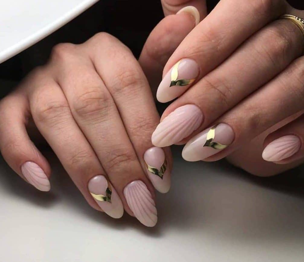 For sophisticated people, a manicure in pale pink with silver or gold stripes is suitable.
