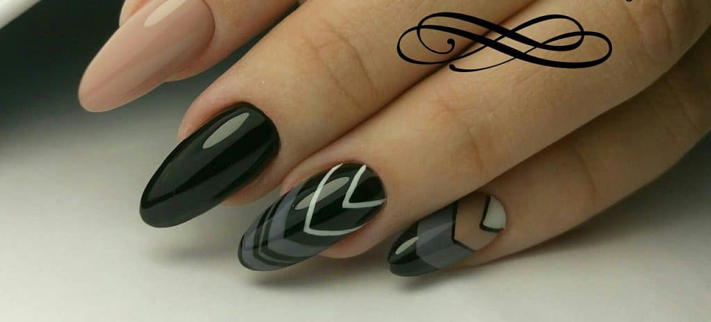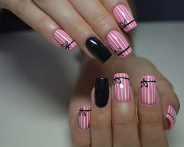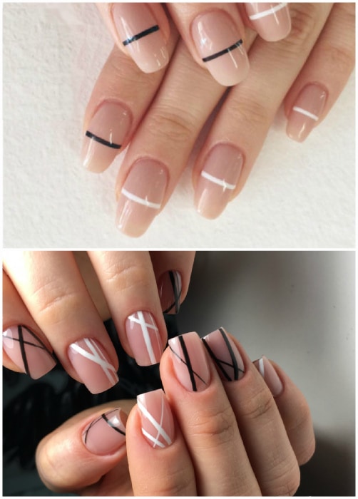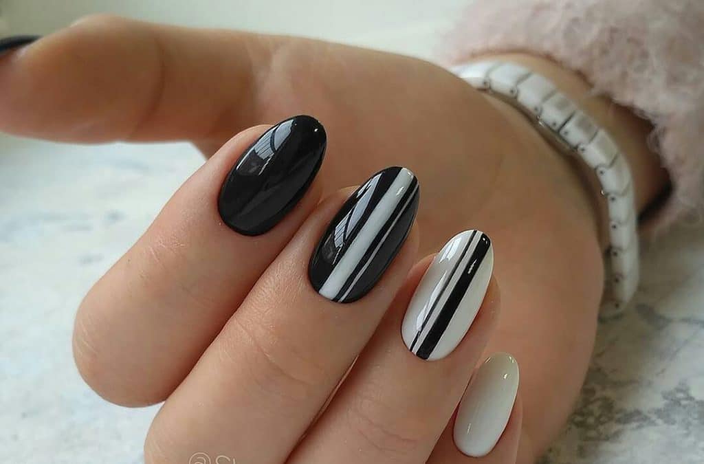 The most popular color in a striped design is without a doubt white and black, or a combination of both. Usually, craftsmen draw one strip along the nail, and others arrange at their discretion, or at your request. This type of striped design is perfect for many things, including office style.