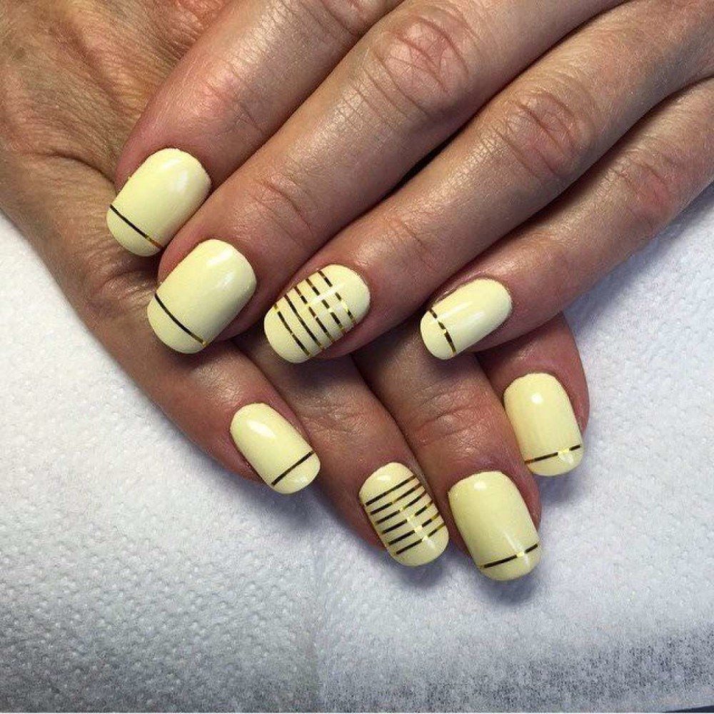 The striped design will help emphasize the color of the varnish, as well as visually lengthen the nail plate.