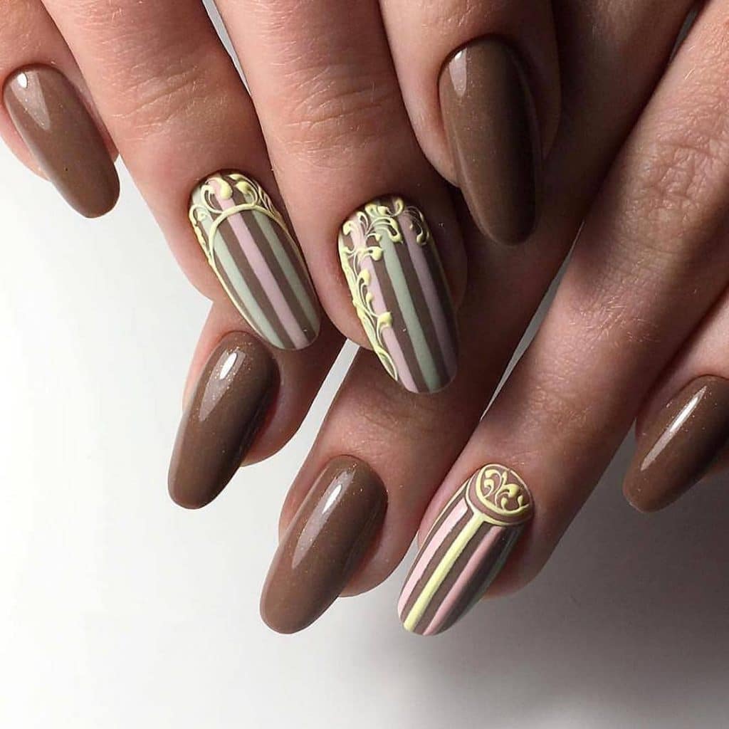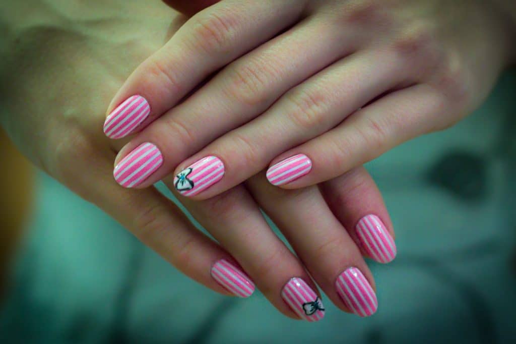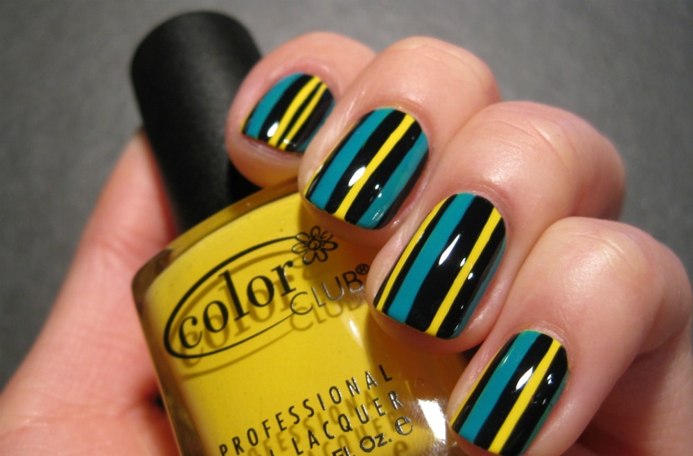 Striped design has recently become fashionable, has already managed to win the hearts of many fashionistas. The secret of the popularity of this species is that it is simple to perform. After all, the speed of its application gives advantages over other types of drawing or pattern. And the number of variations of striped patterns is unlimited due to the geometry of the lines.