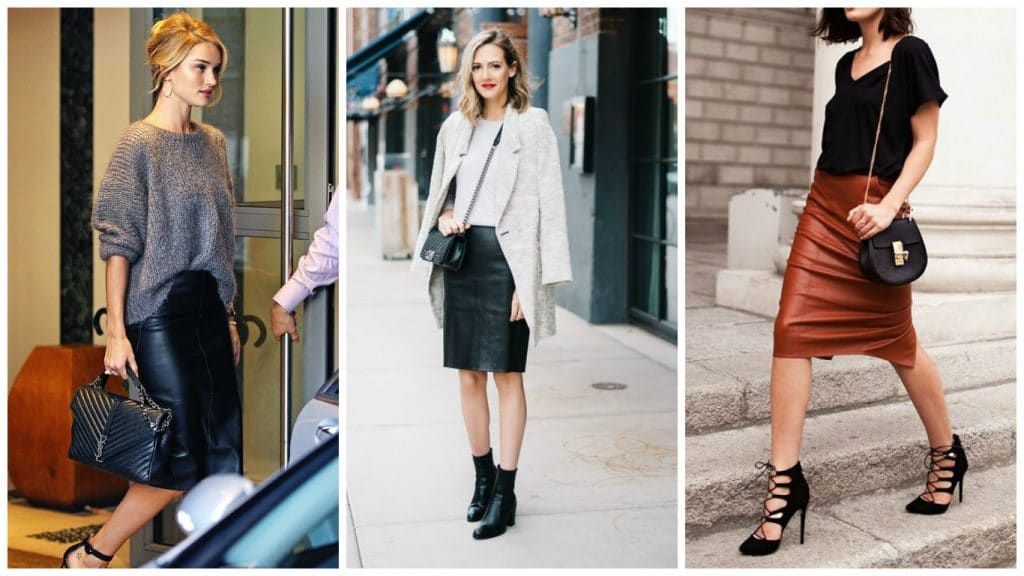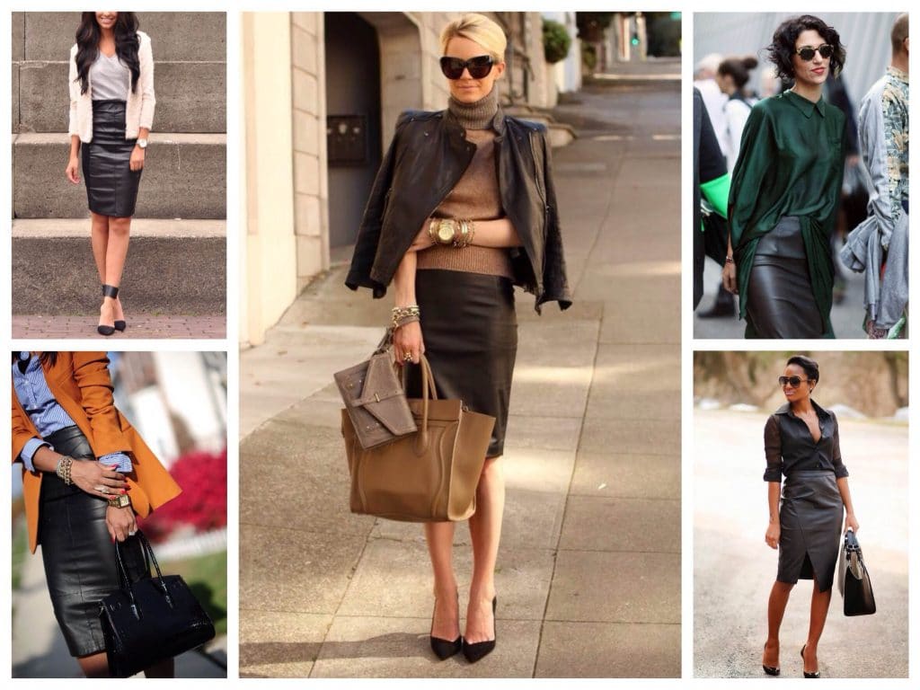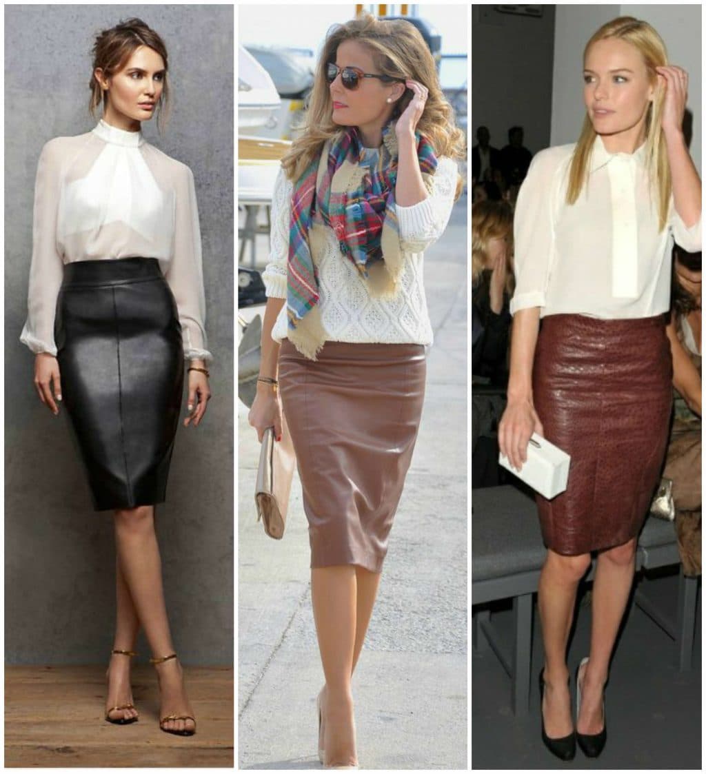 A leather skirt can be worn both for work, if you do not have a strict dress code, and for a walk. Combine with a modest way, and be a fatal beauty who knows her worth.