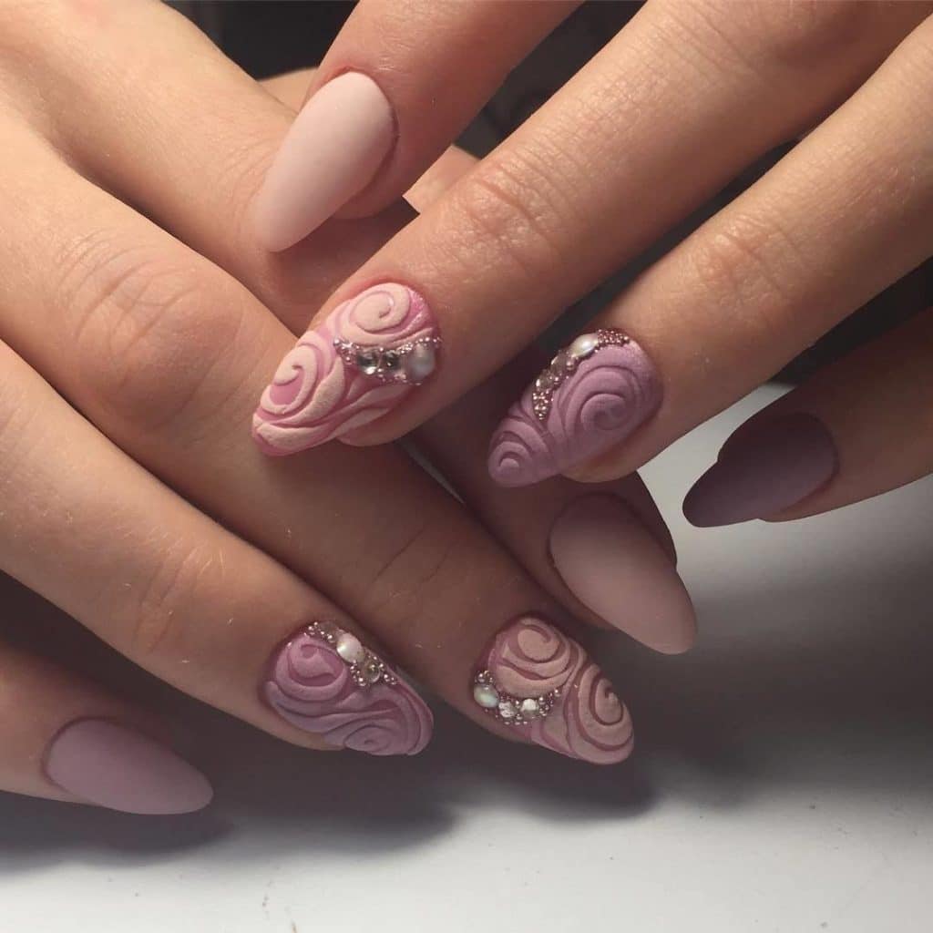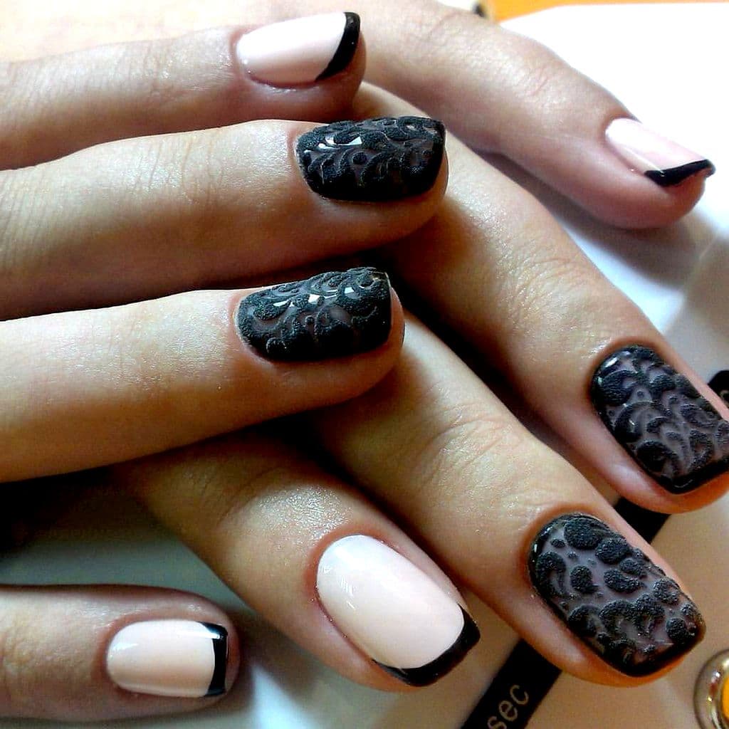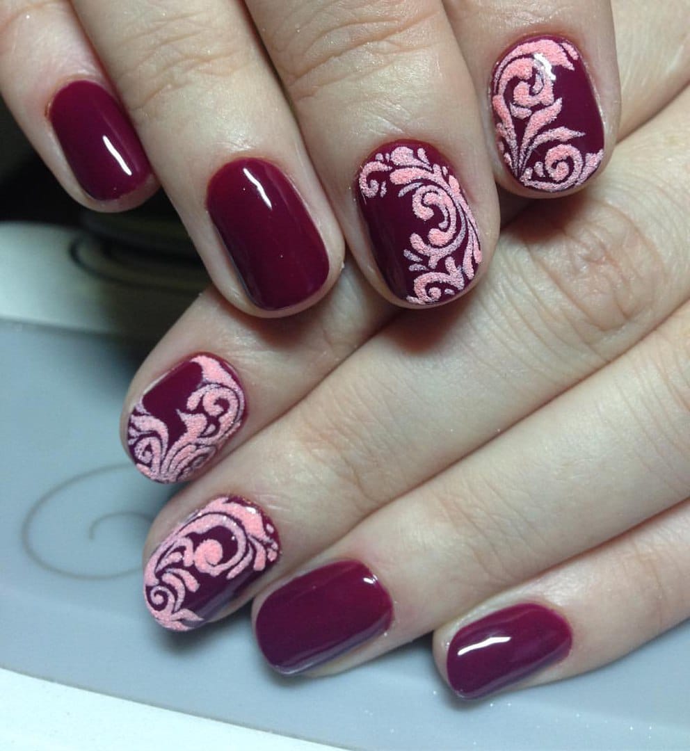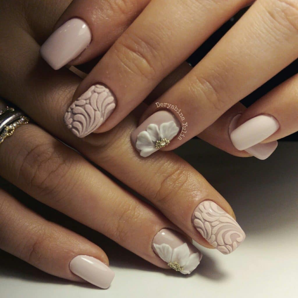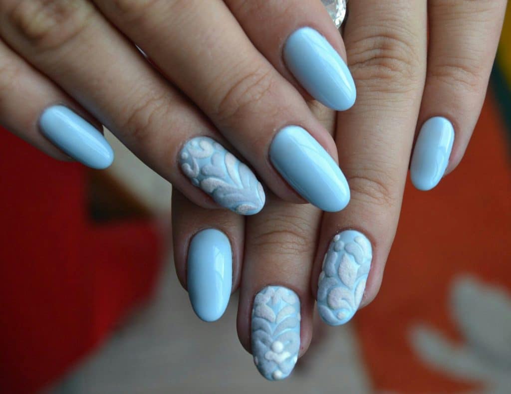 A manicure with acrylic powder can be attributed to 3d designs in view of the fact that with the help of powder a three-dimensional pattern is created.