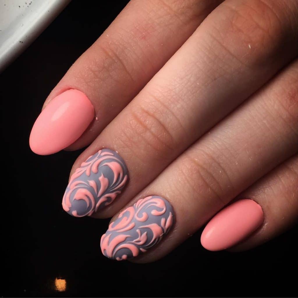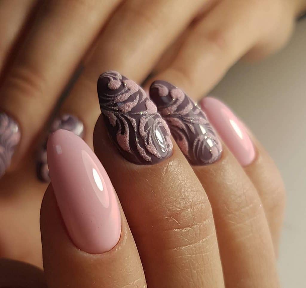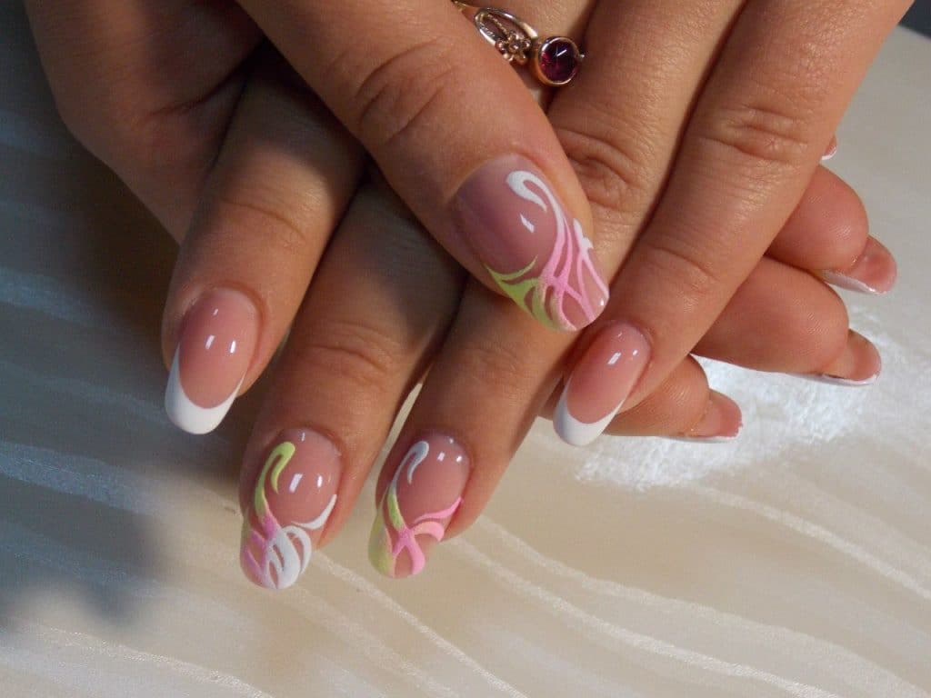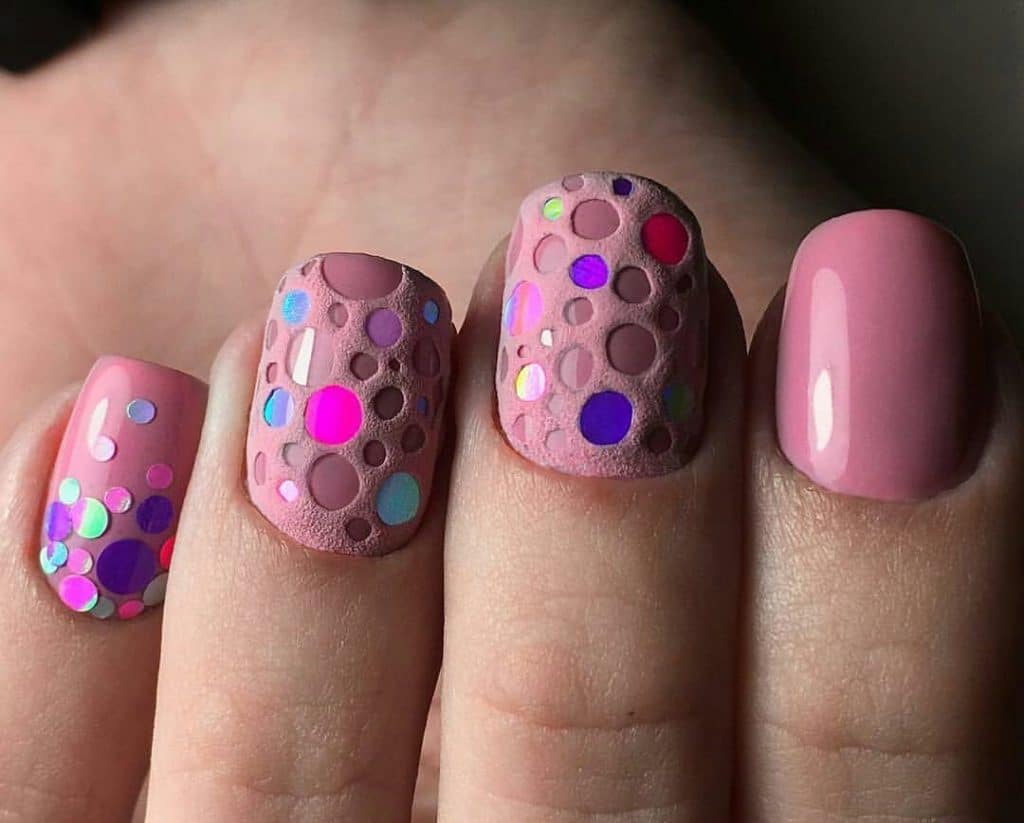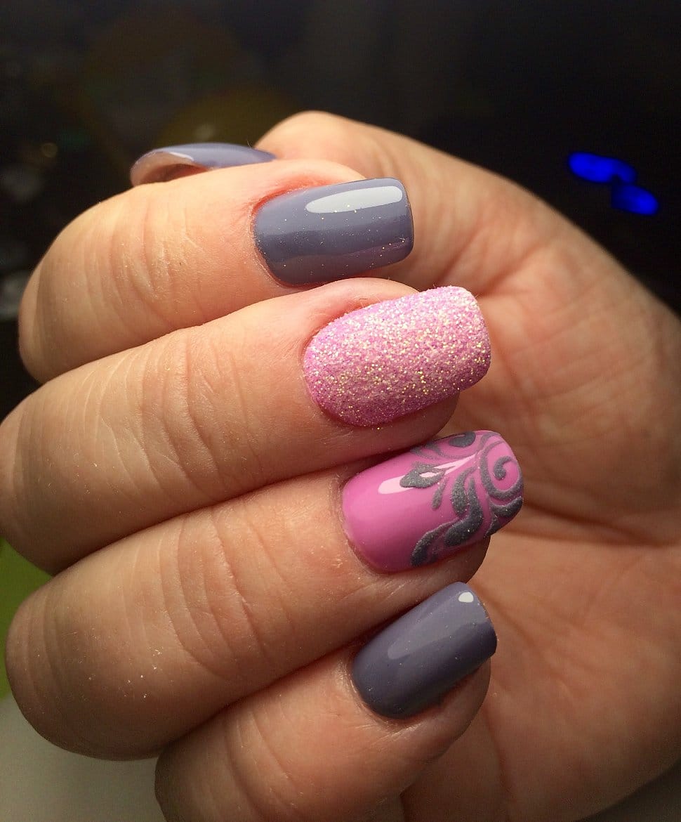 A manicure with acrylic powder can be attributed to 3d designs in view of the fact that with the help of powder a three-dimensional pattern is created.