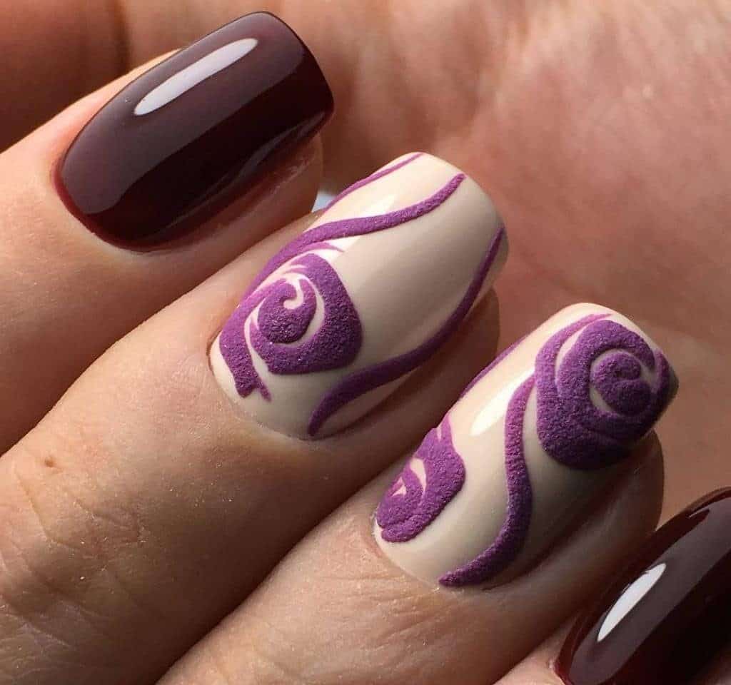 Well, in the end, one more version of manicure with acrylic powder should be noted - velvet manicure. It is created similarly to other types of manicure with powder. However, in this case, it covers the entire nail as a whole.
