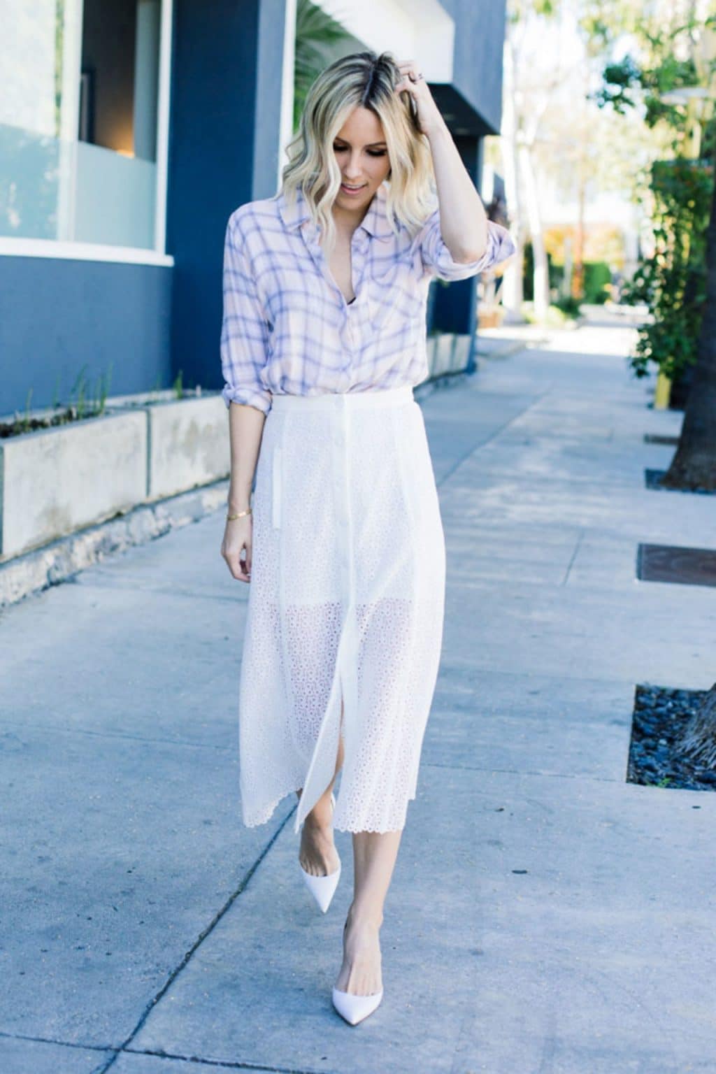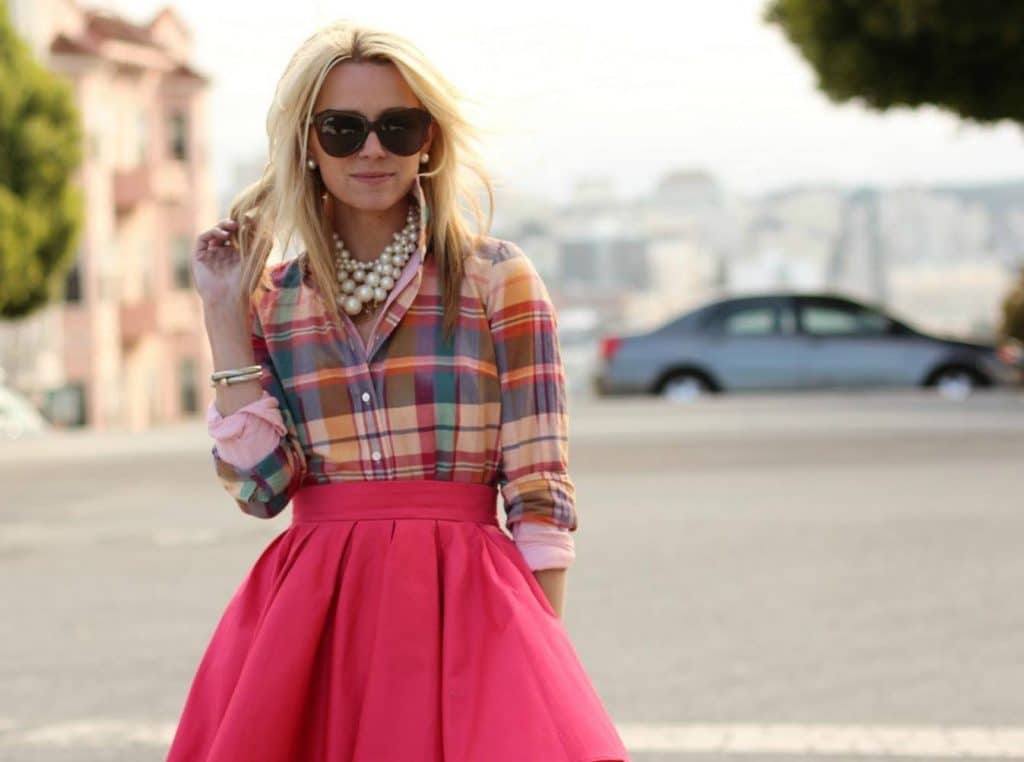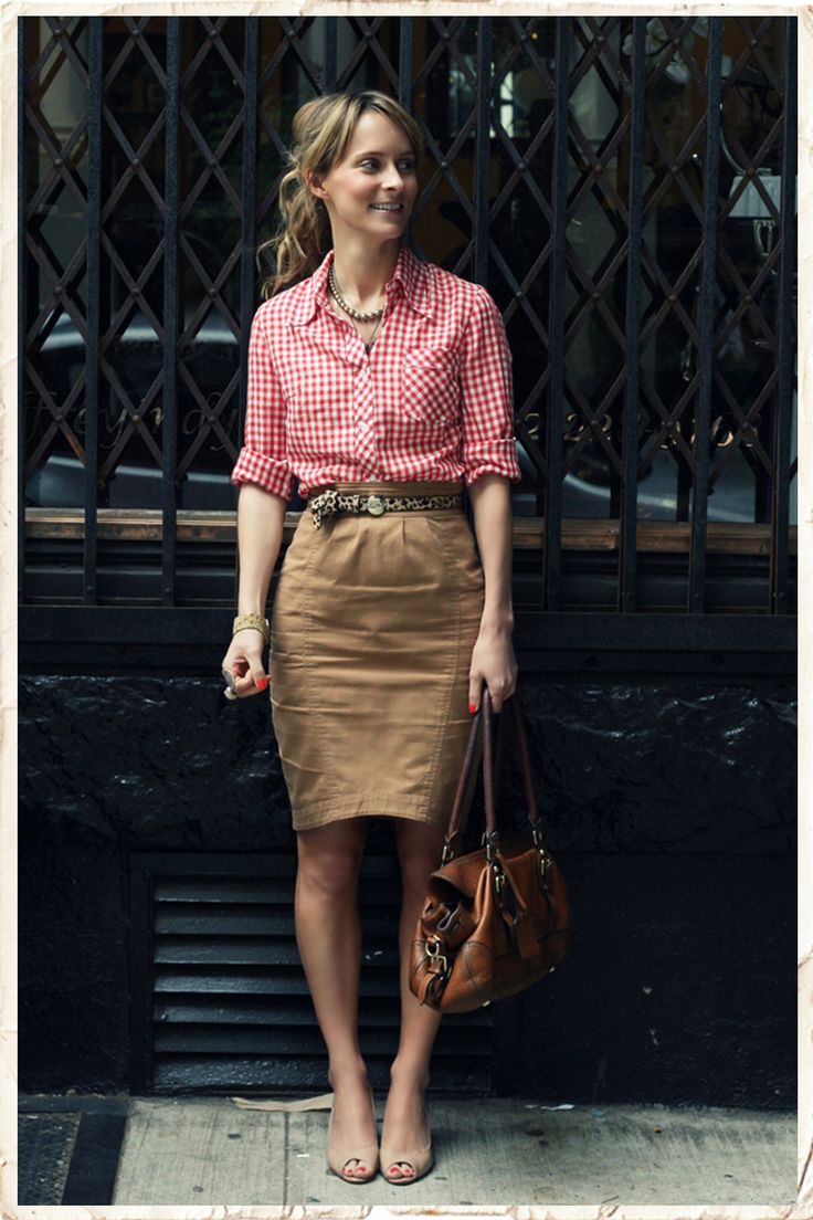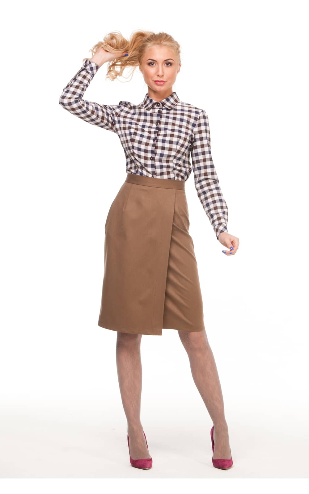 Choosing a plaid shirt for a work outfit is more likely to work with a loose dress code. For work with a plaid shirt, it is better to combine plain skirts, a pencil skirt will be perfect. As shoes fit classic pumps or ballet shoes.