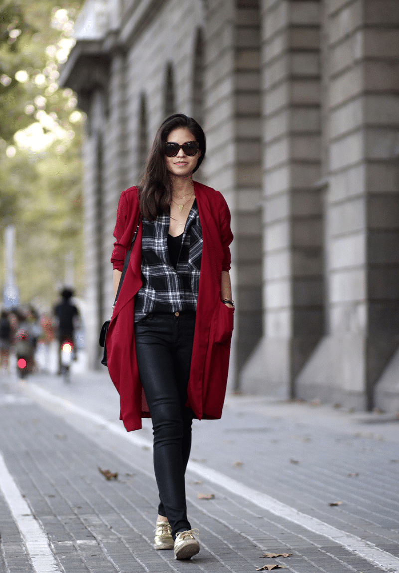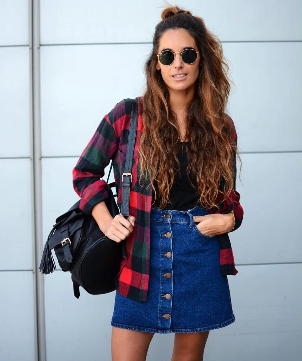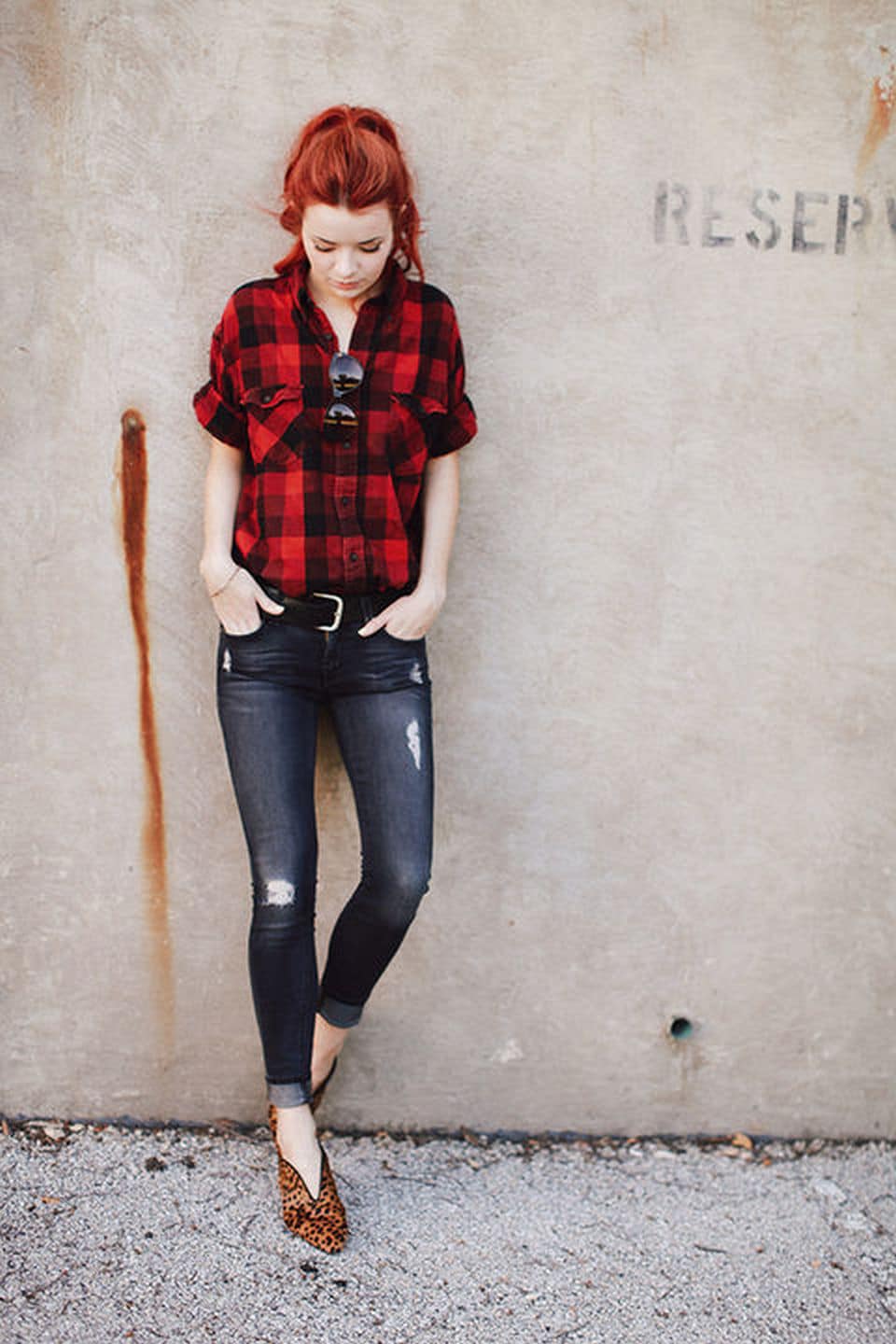 The main thing is not to forget to choose a simpler bottom style, as a plaid shirt is already your accent.