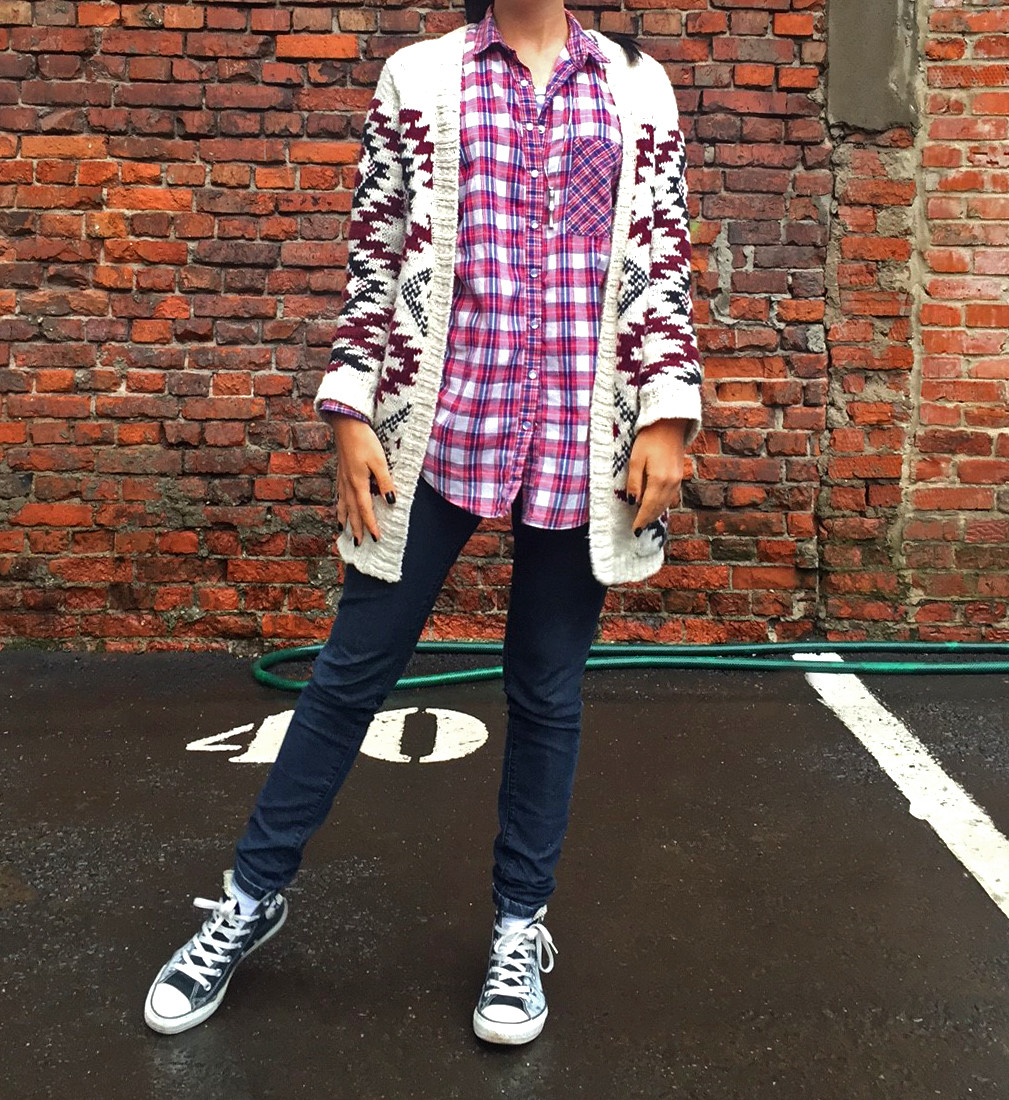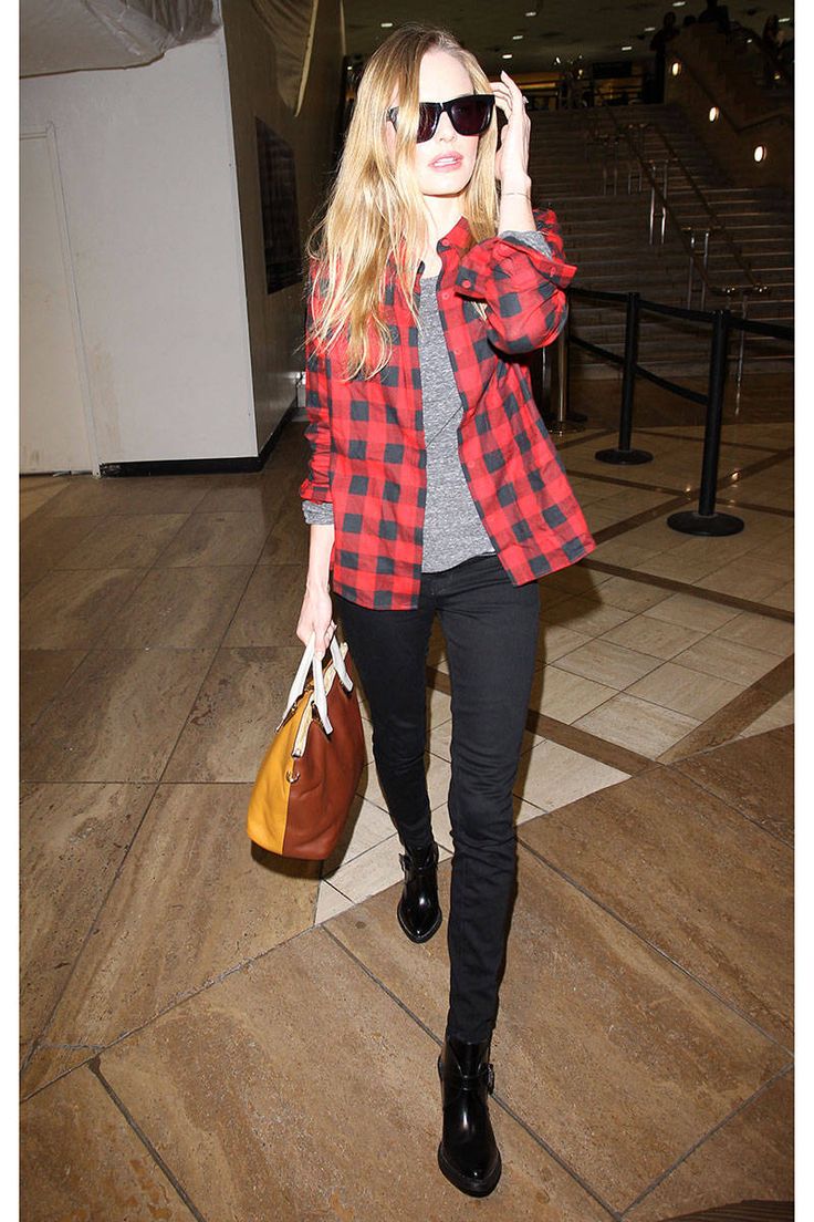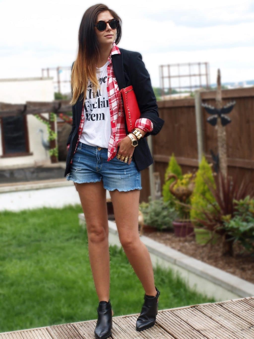 The main thing is not to forget to choose a simpler bottom style, as a plaid shirt is already your accent.