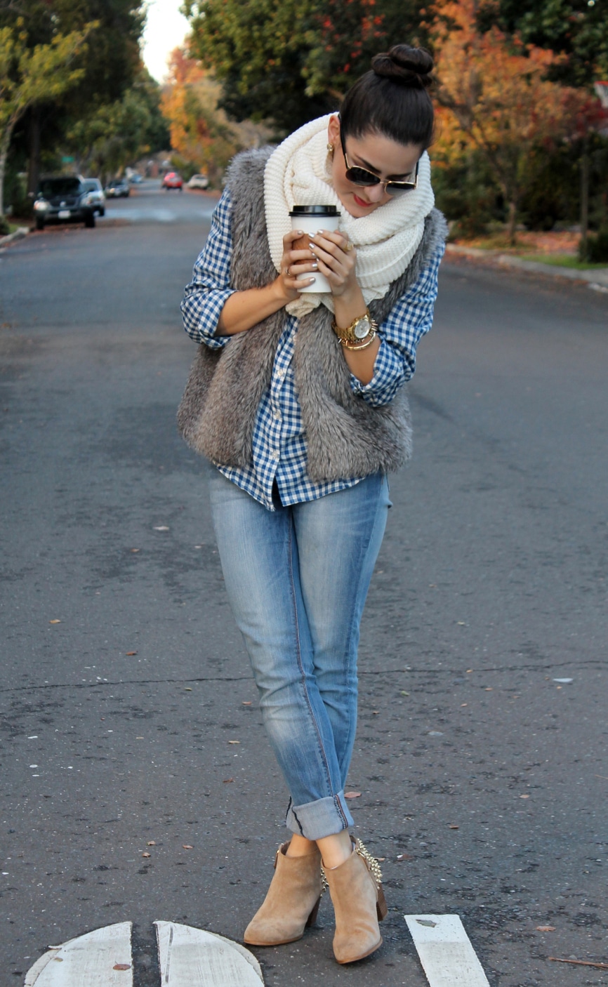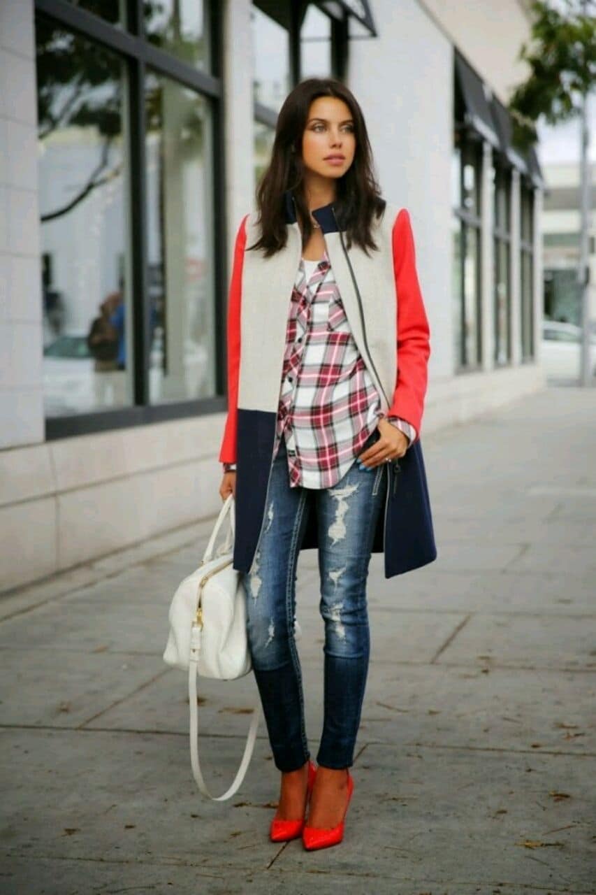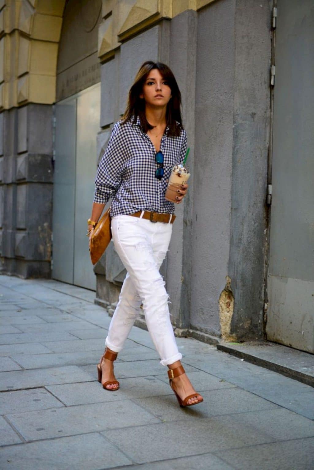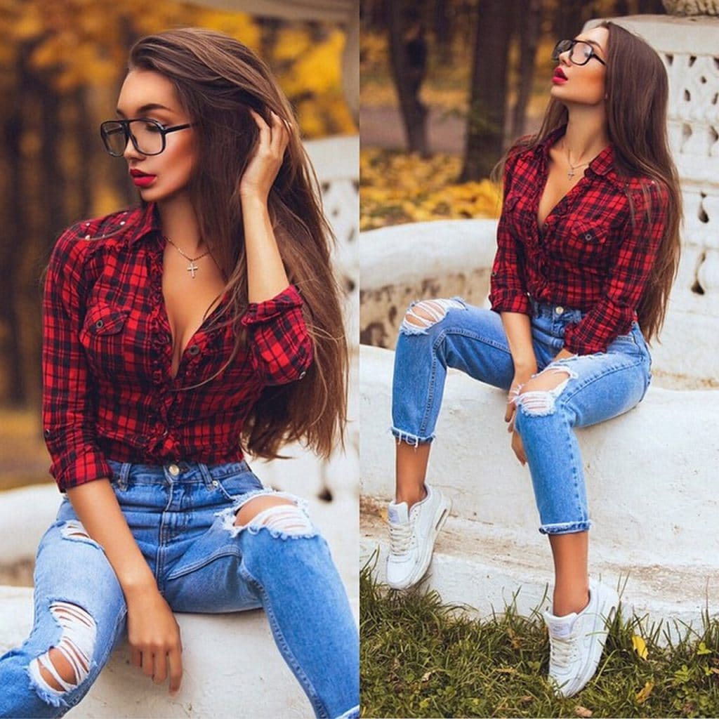 A plaid shirt with jeans is the most classic combination. In this way, you can go anywhere: for a walk with a friend, on a date, or for shopping.