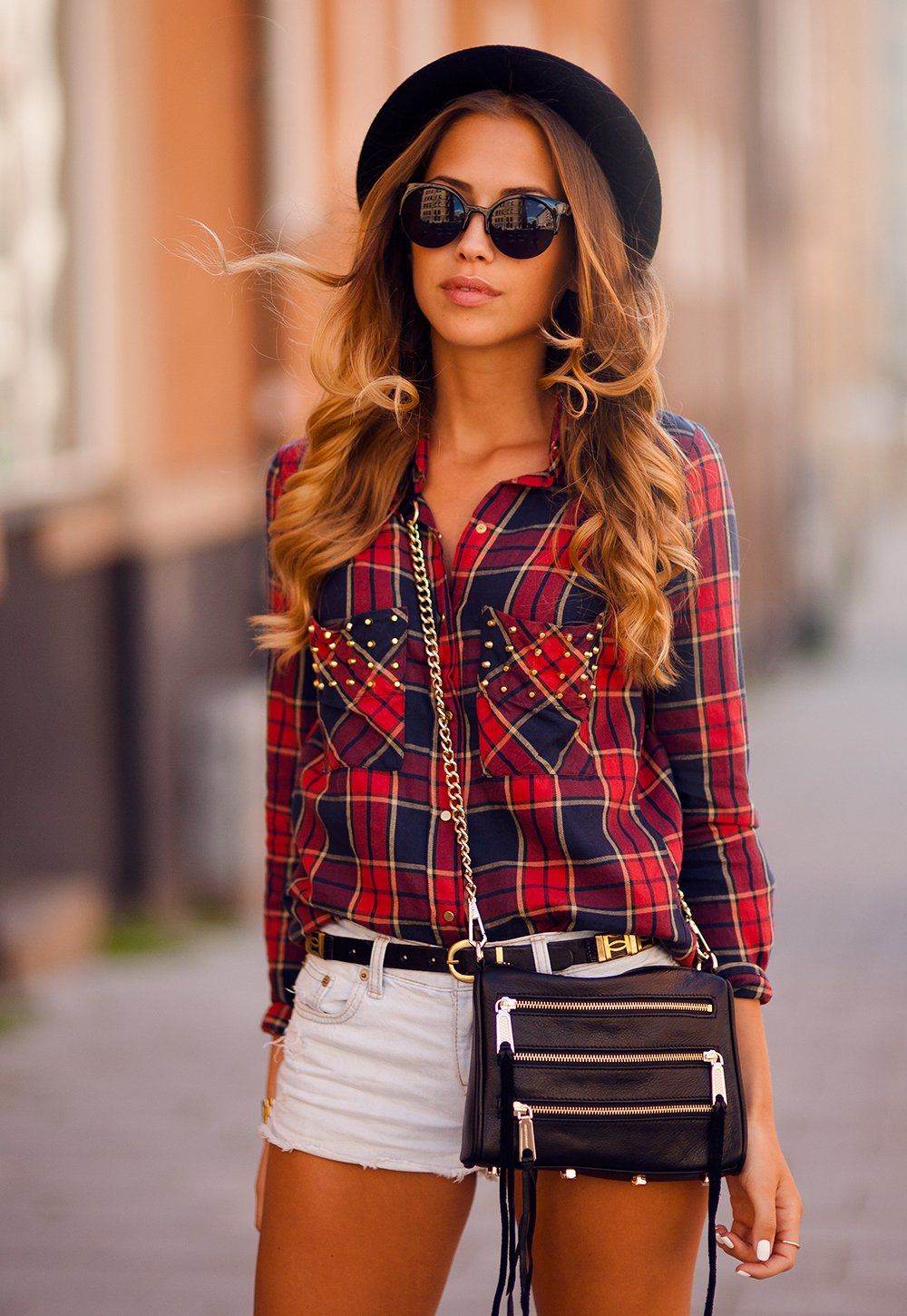 A checkered shirt over a basic t-shirt or t-shirt is a variant of the image of American fashionistas. But now this image has become fond of many girls who prefer a sporty, free style in clothes.
