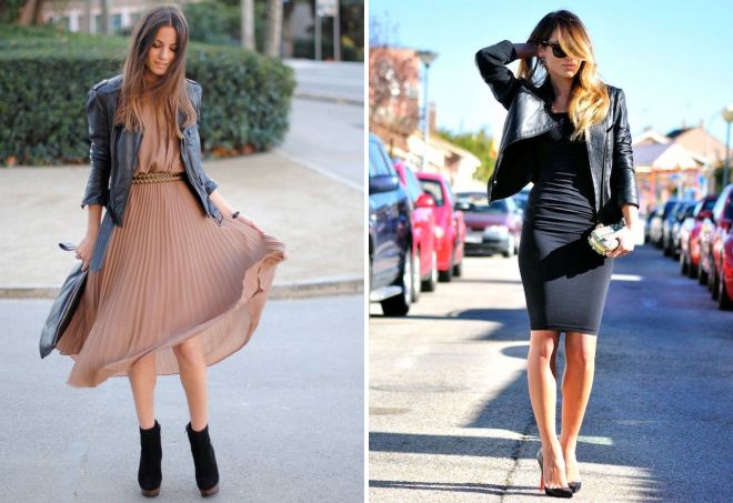 Note! A mini dress with a biker jacket will look vulgar, in addition, short dresses this season are not in trend, so it is better to abandon this idea.