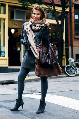 Whatever you wear, an oversized scarf will complement your look. The original fashionable scarf looks great with leather; many celebrities choose this bow for walking.