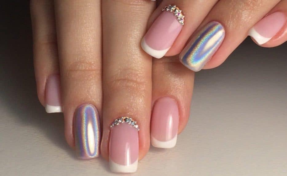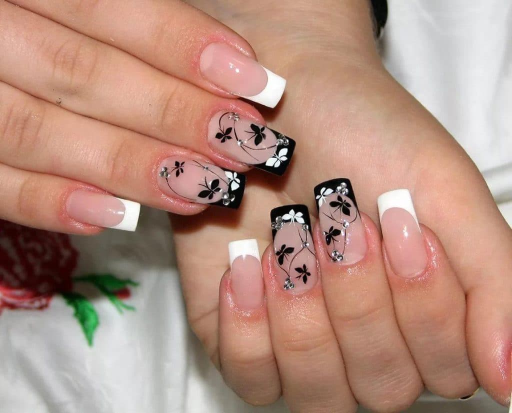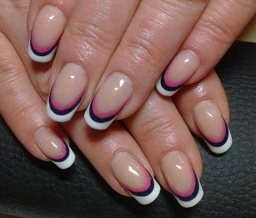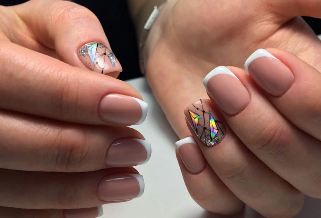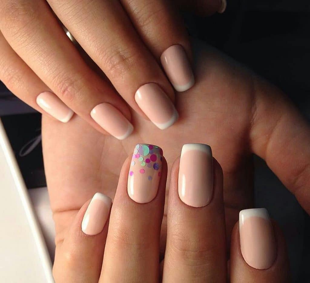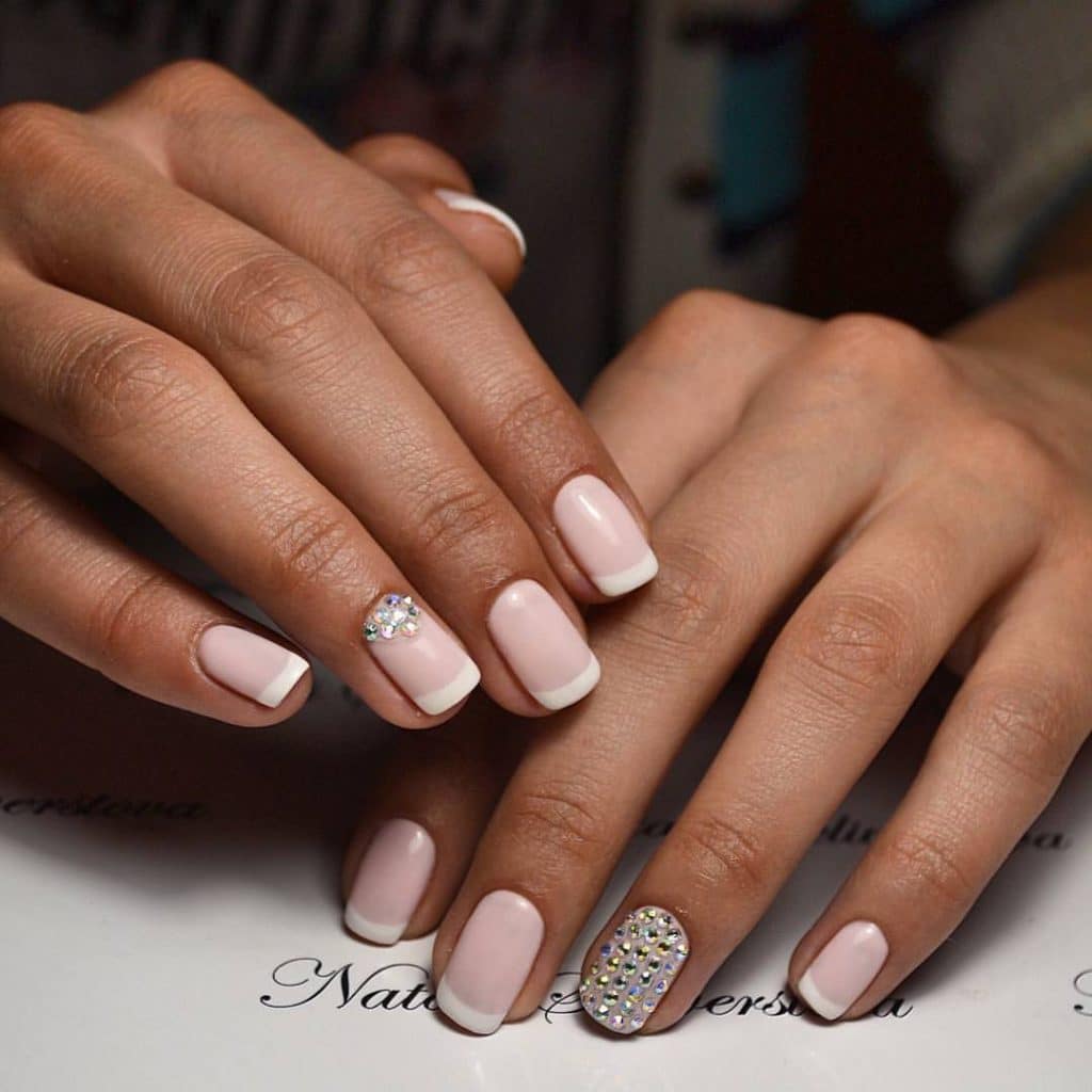 French manicure is universal. Its main difference from other coatings is the highlighted smile zone, where the nail bed remains in its natural color.