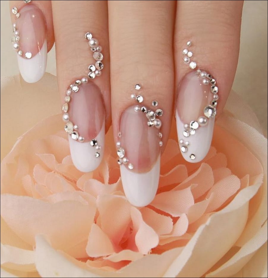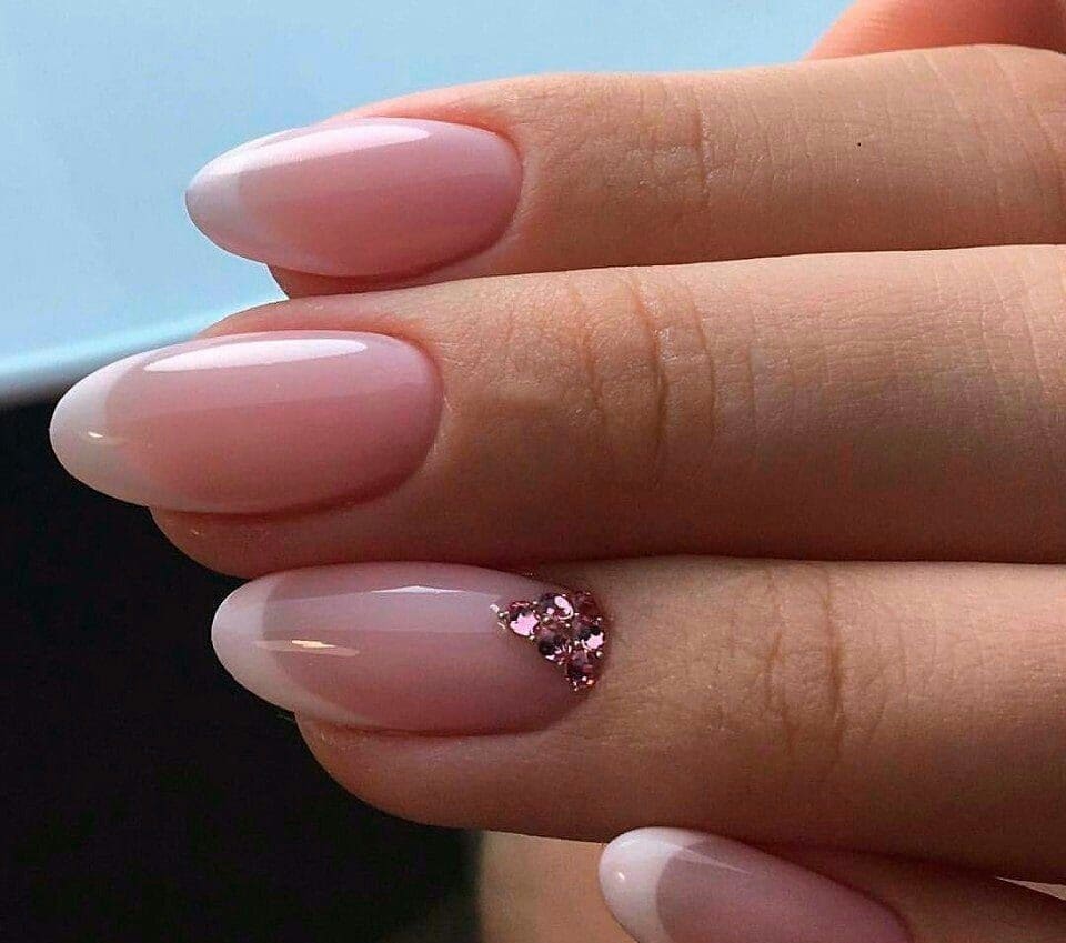 Everyone knows this word. Small, multi-colored or plain crystals have an amazing property - to shine. Rhinestones usually adorn either one of the nails, or several at once.