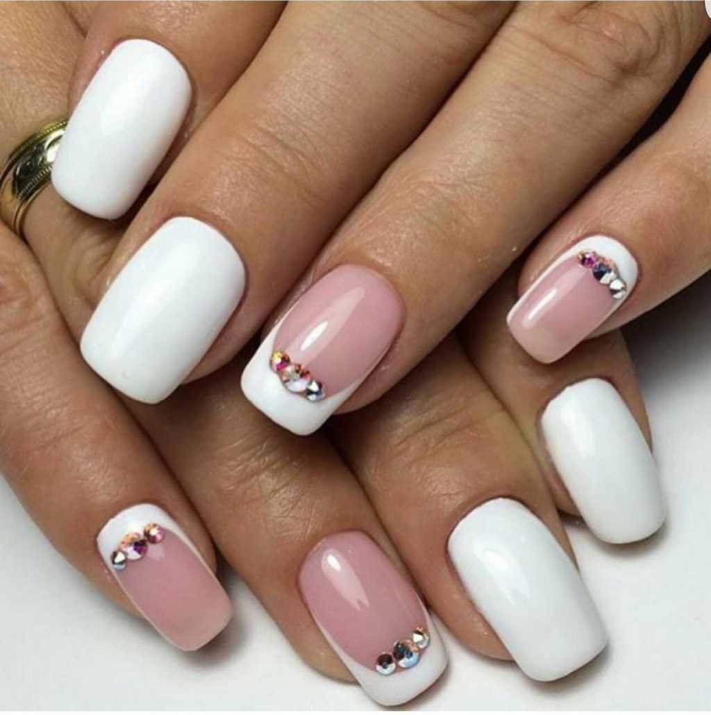 In another embodiment, rhinestones can be distributed over all nails, the main thing is not to overdo it with their number. It’s not always a lot, it’s good.