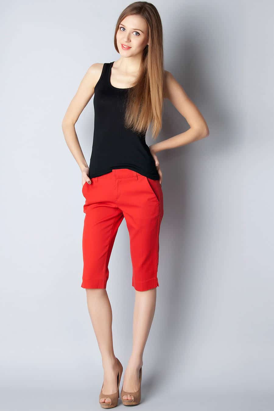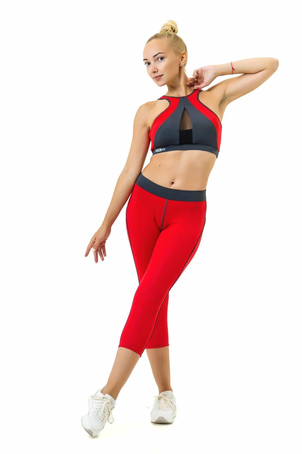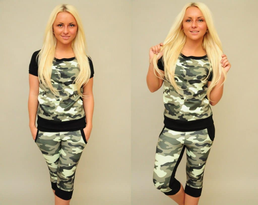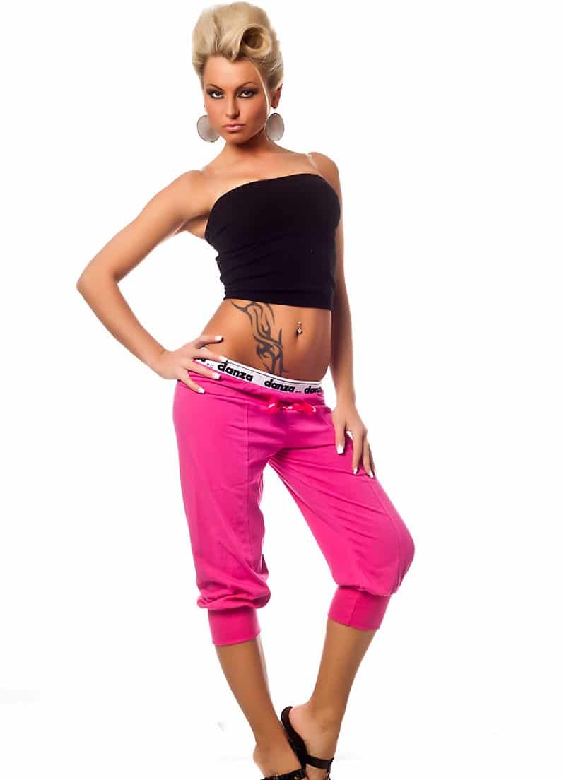 For girls possessing sports, fit figure, under sports breeches can put on short top