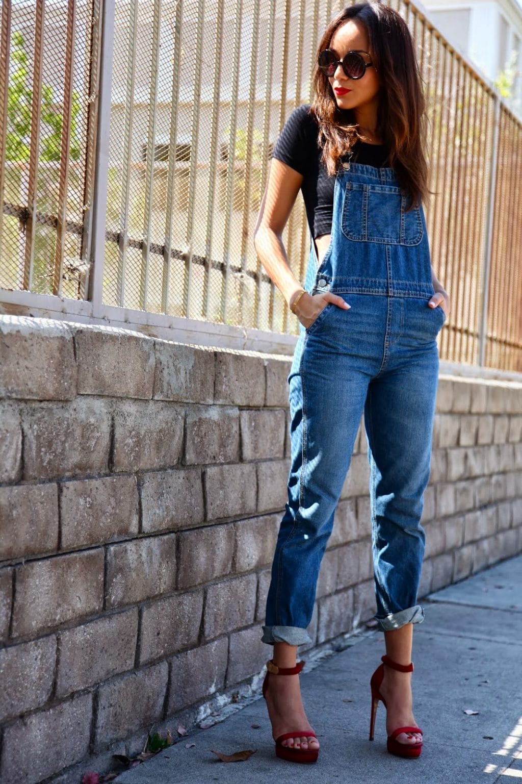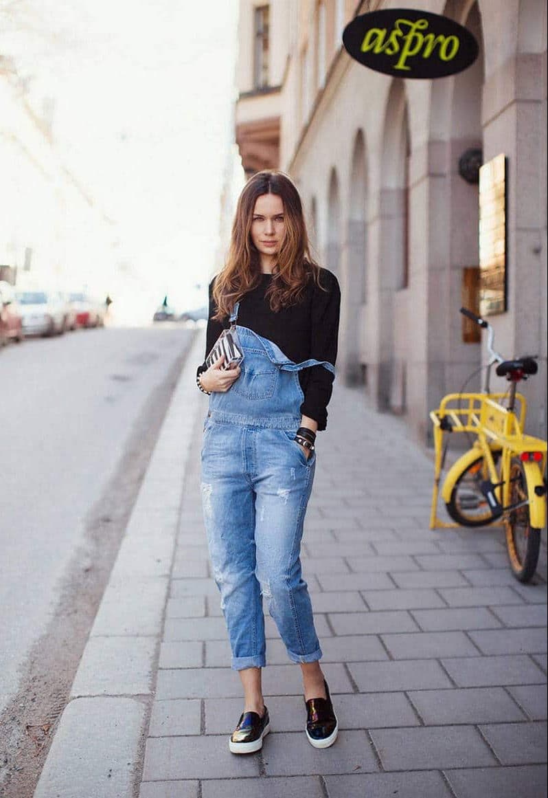 For slim girls, a combination of overalls with a short top will be a great option.