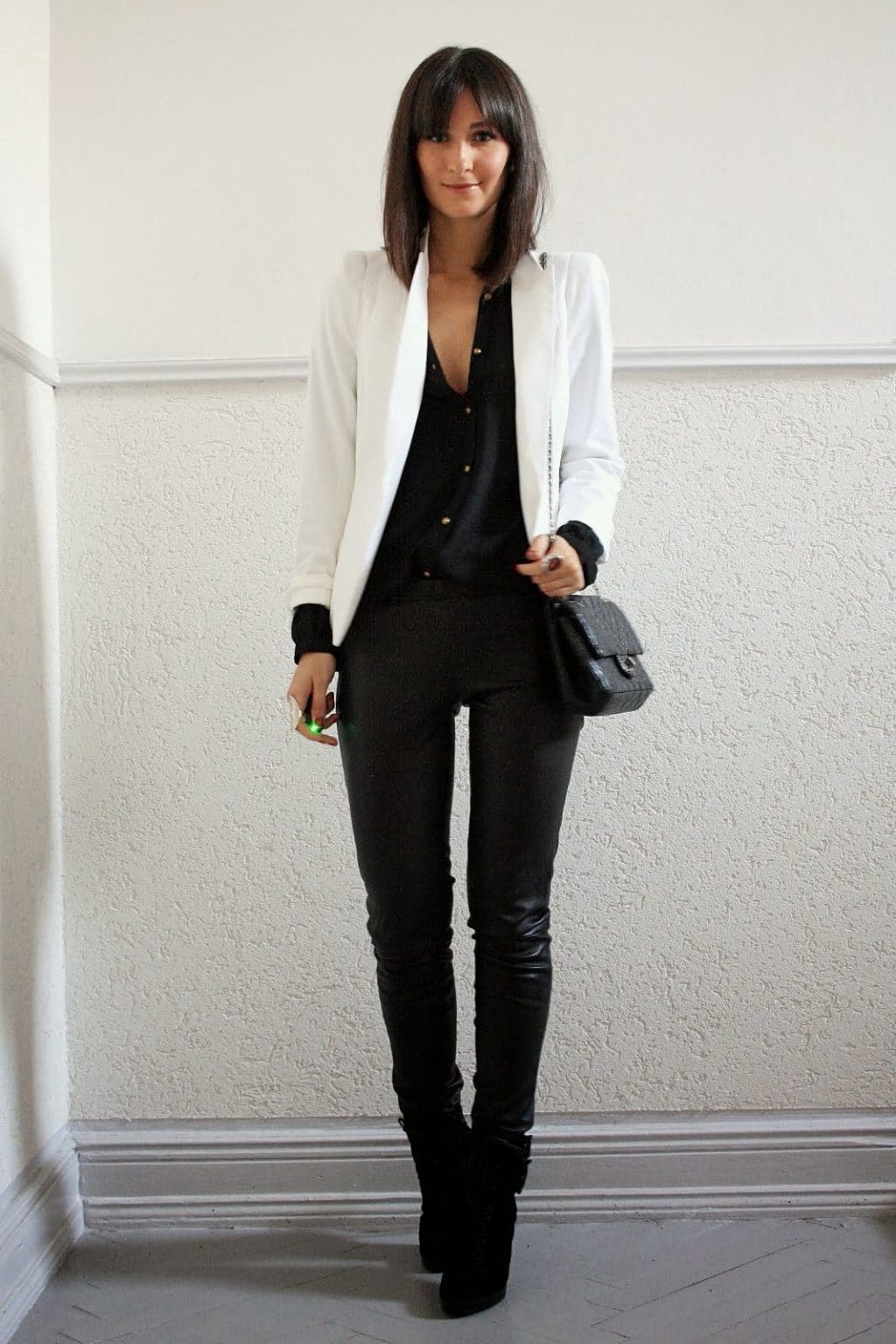 Or choose a bright jacket and focus on it. With this way best suited heeled shoes.