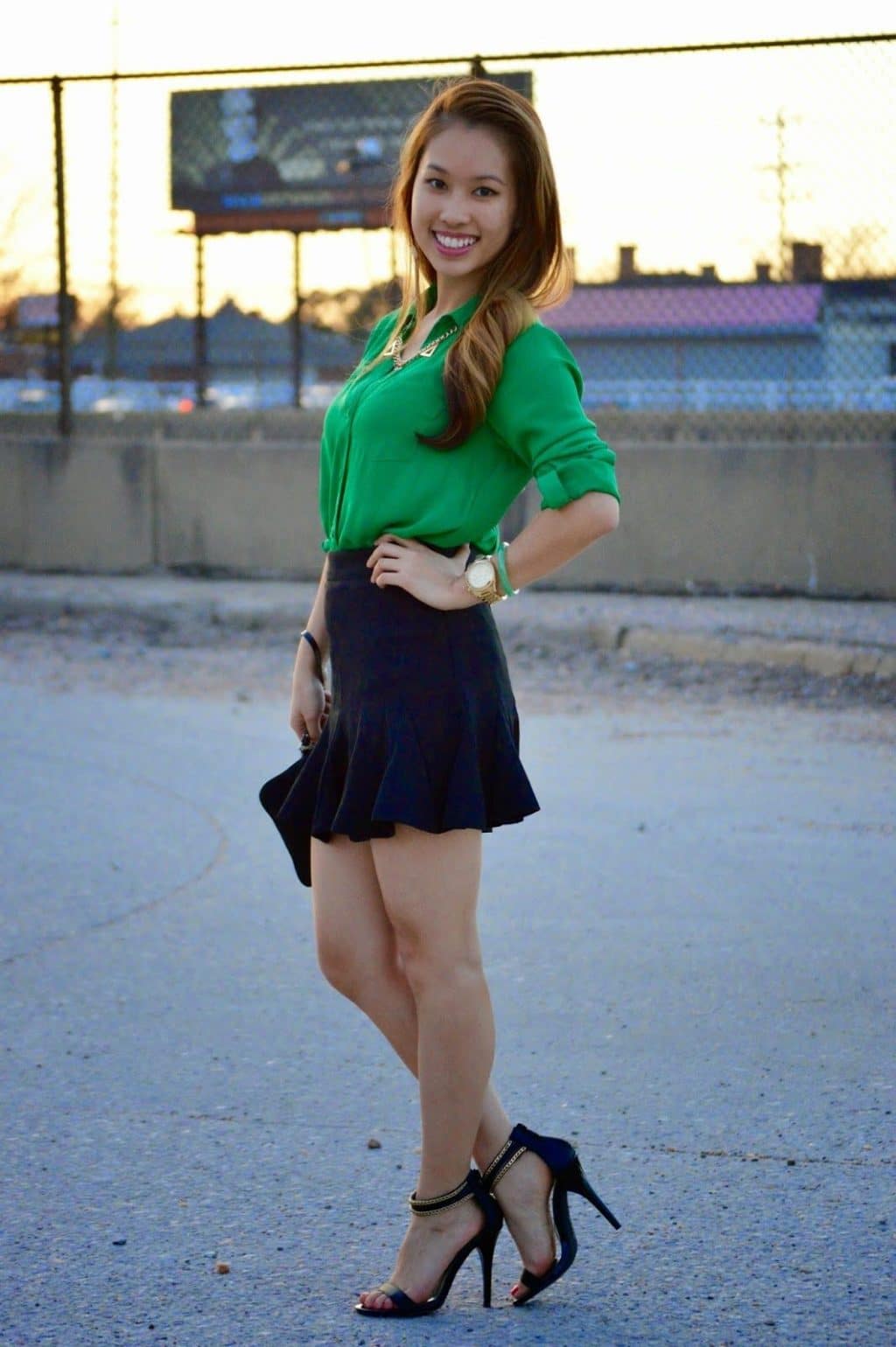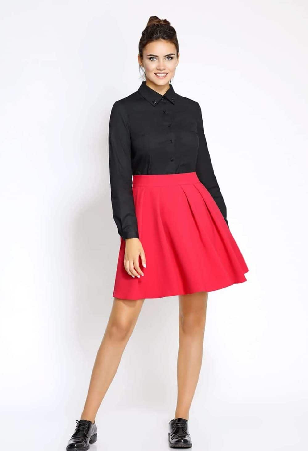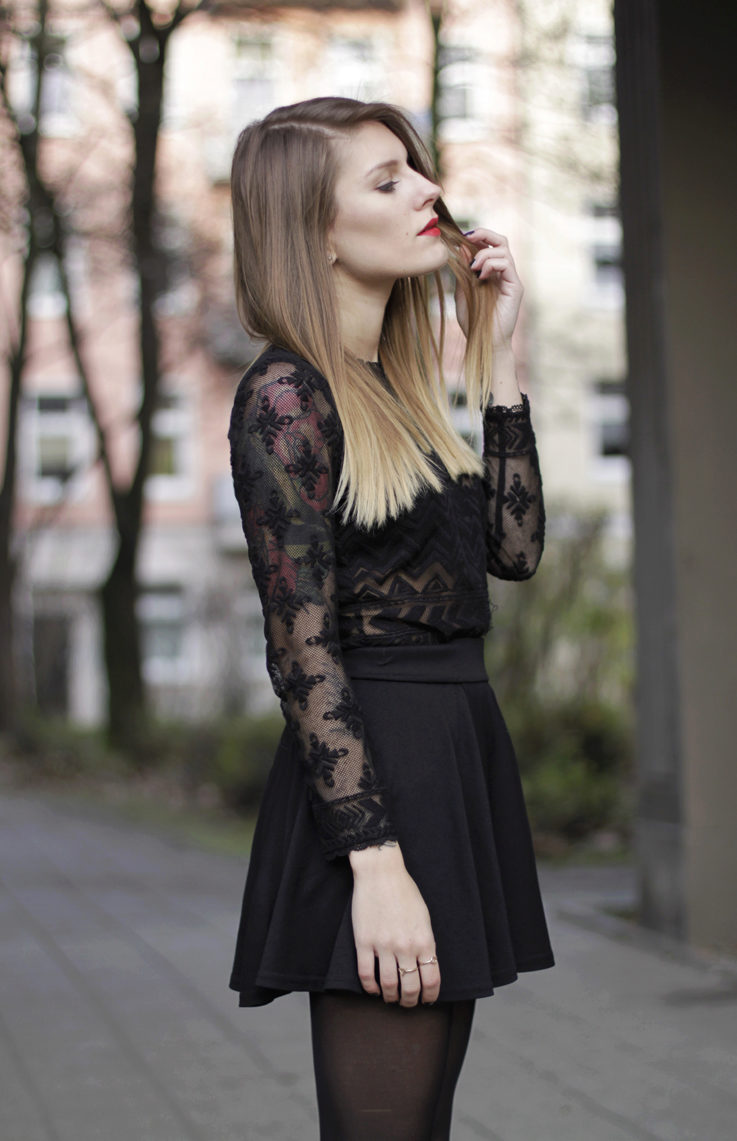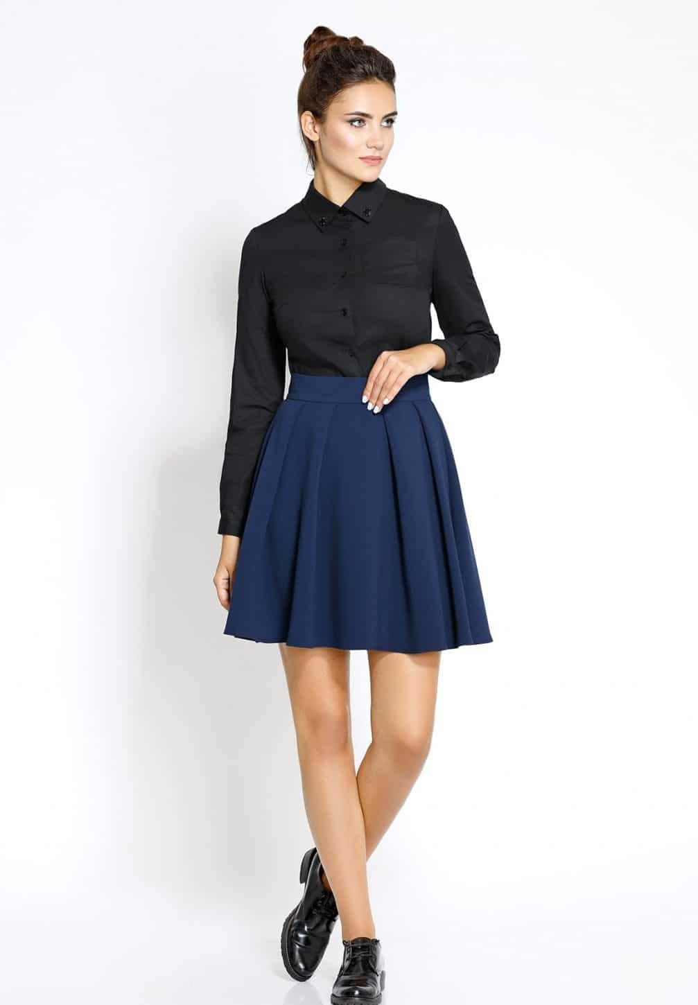 Black blouse and skirt, it turns out successful combination, Where style skirts is playing an important role. More classic skirt—pencil-office onion. Easy, short skirt – romantic.