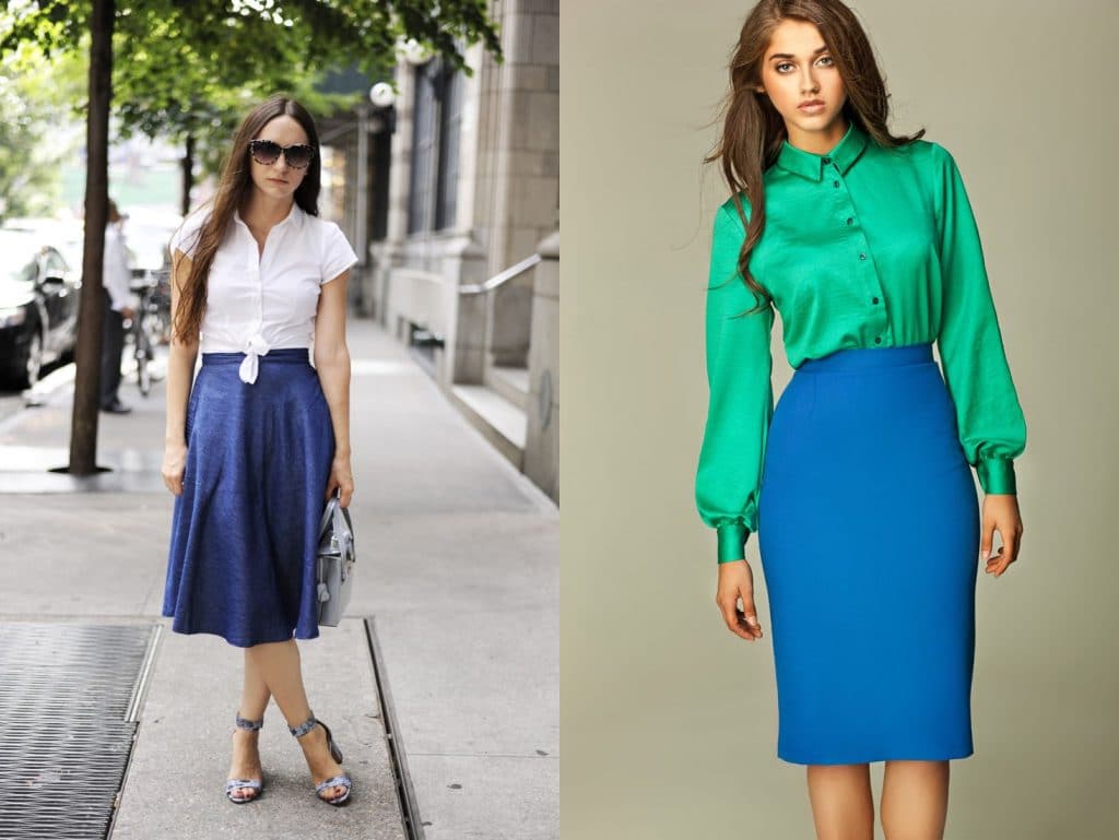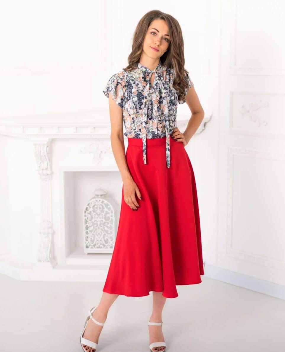 Combination two bright flowers blouses and skirts, no one not will leave indifferent.