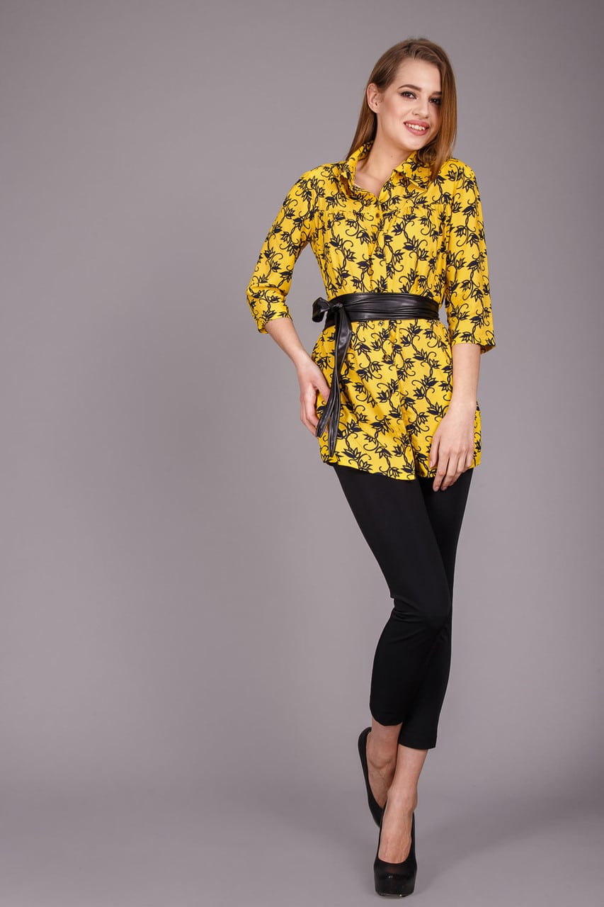 Yellow, solar color blouses, harmoniously combined from trousers flower print.