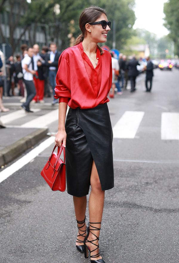 Bright, sexual red color always will be on pique his popularity. If you get blouse at such color, then get ready! After all all Attention inevitably will be directed only on you.