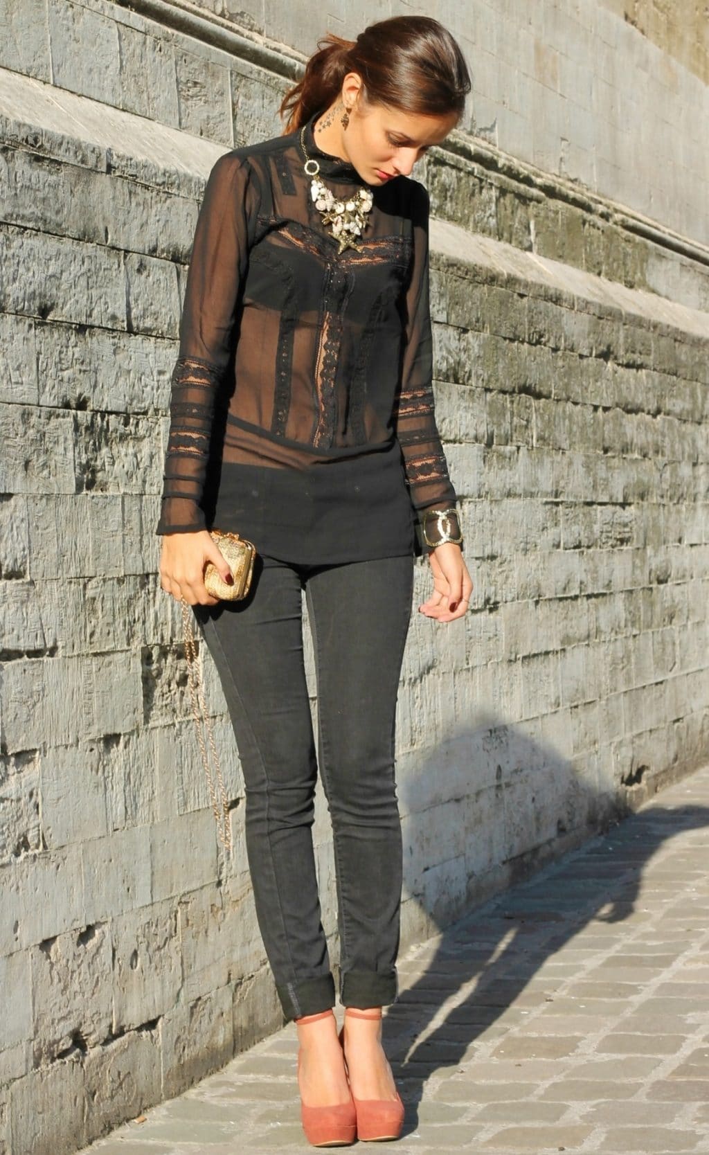 Black blouses of chiffon and satin – more claimed on the market. They look more feminine and attractive, but at then same time solemnly.