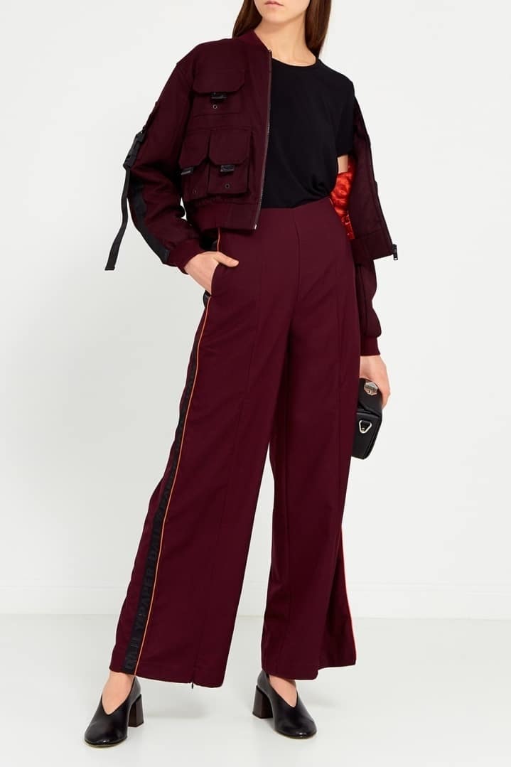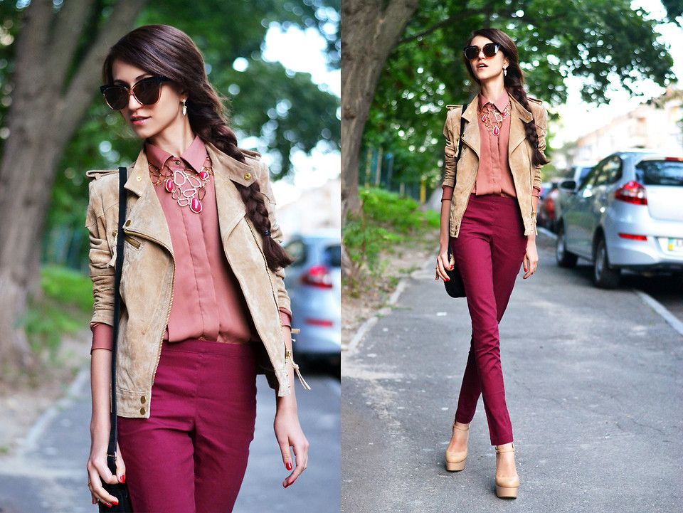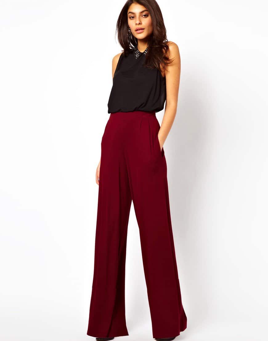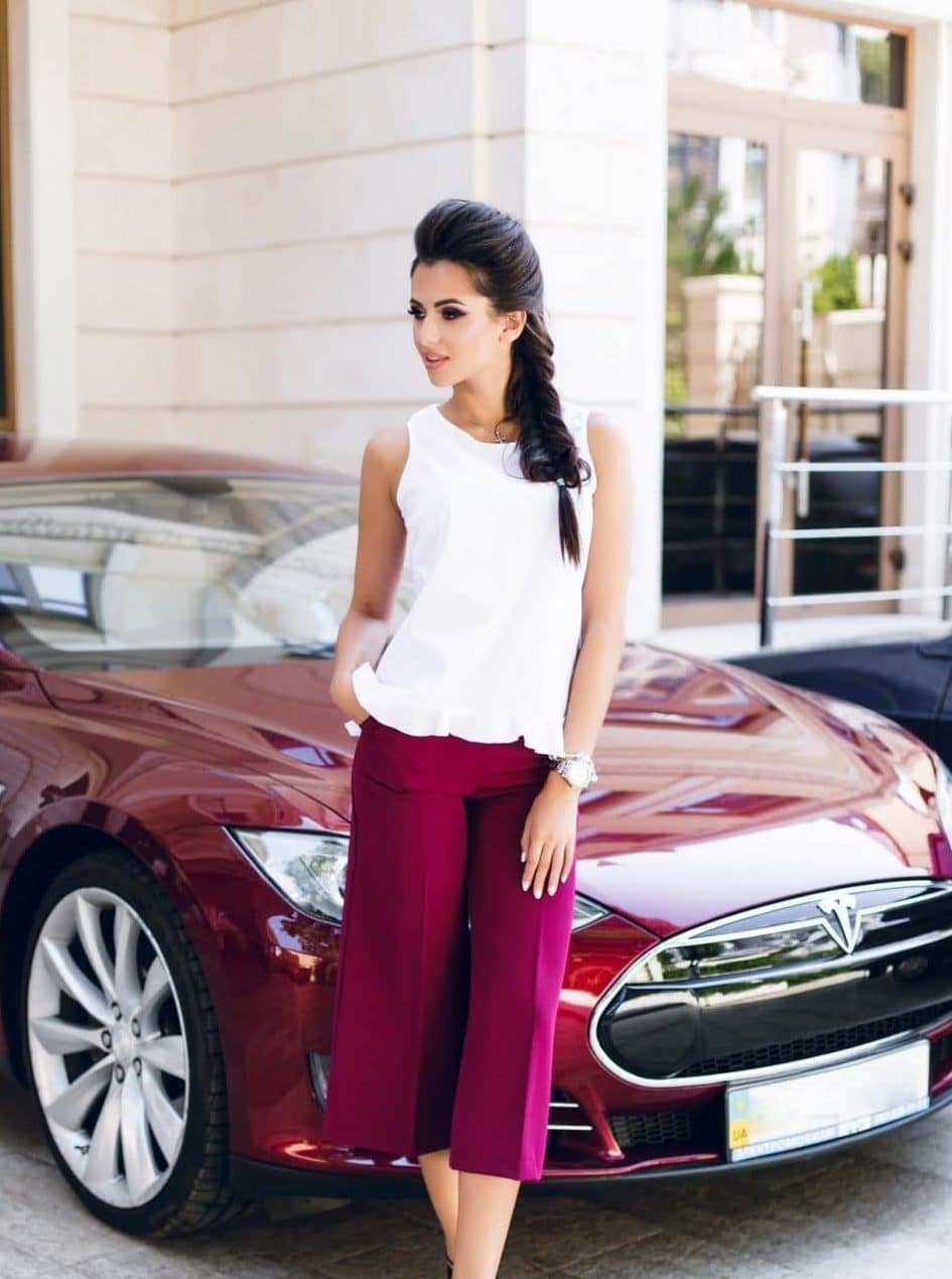 When choosing a burgundy color for trousers, be prepared for the fact that you will inevitably attract a lot of attention. Therefore, your image should be worked out to the smallest detail.